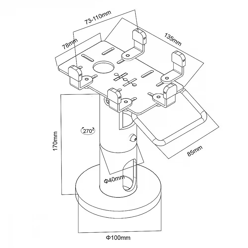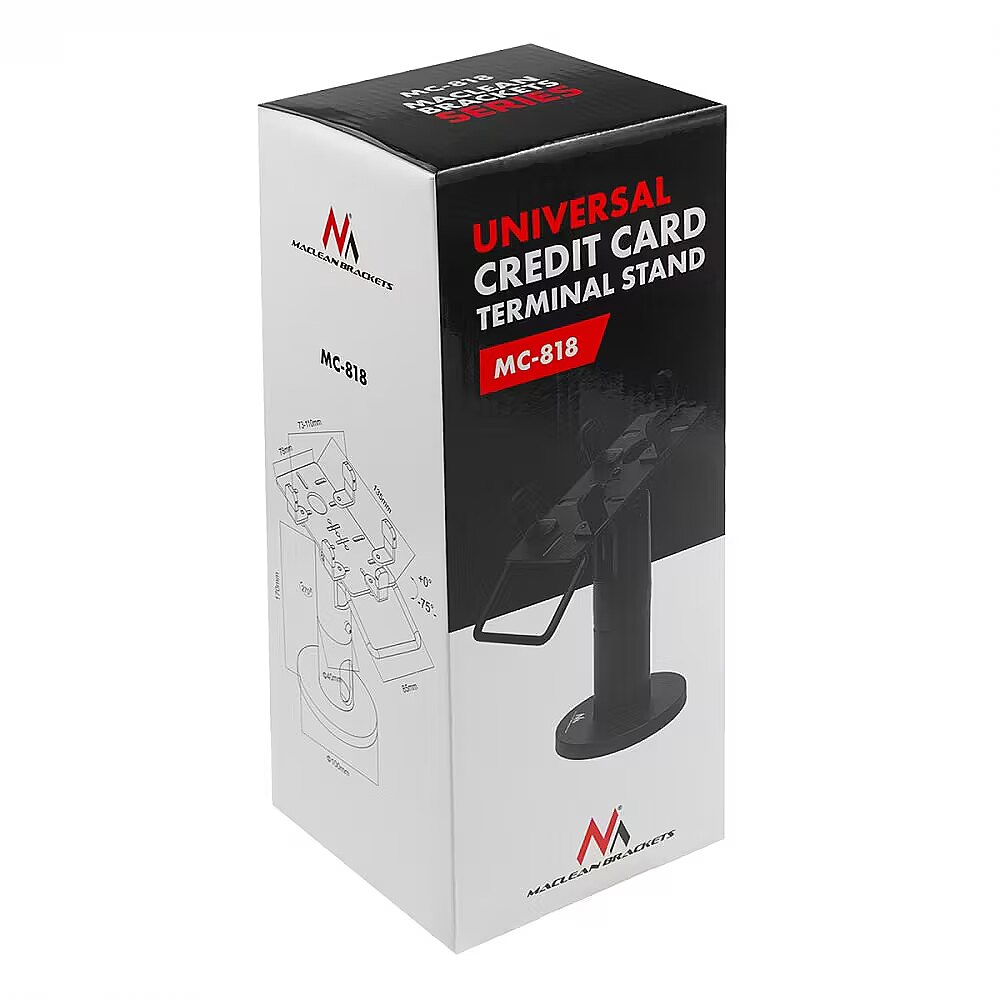 Description - Rotary reader payment terminal holder Maclean payment terminal holder, POS, universal, MC-818 Maclean MC-818 payment terminal holder is a universal solution for mounting POS devices. It provides a stable and secure mounting of the terminal, which facilitates the handling of payment transactions. Made of durable materials, it guarantees long-lasting use. Thanks to its adjustable width, it is compatible with many models of payment terminals. Maclean MC-818 is ideal for stores, restaurants and service outlets. It allows easy access to the device, which speeds up the customer service process. His design allows the terminal to be rotated 270°, making it easy to interact with customers.