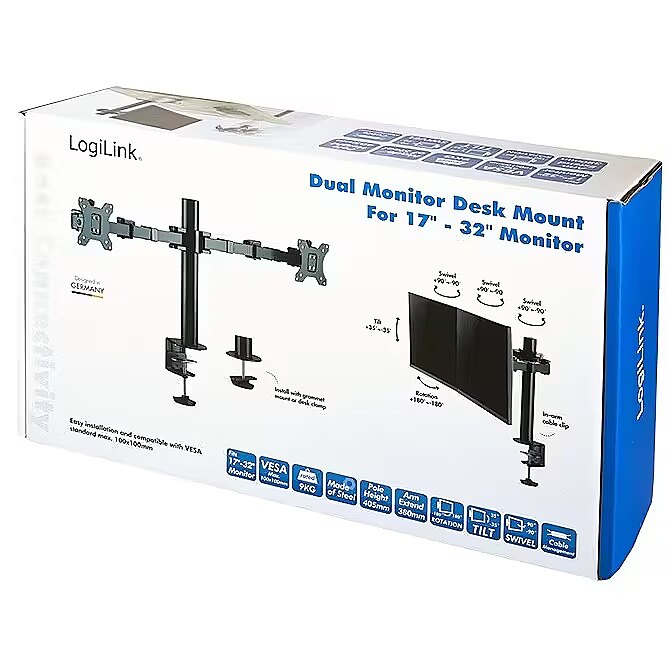 Logilink BP0106 Dual monitor mount 17-32inch arm length adjustable
