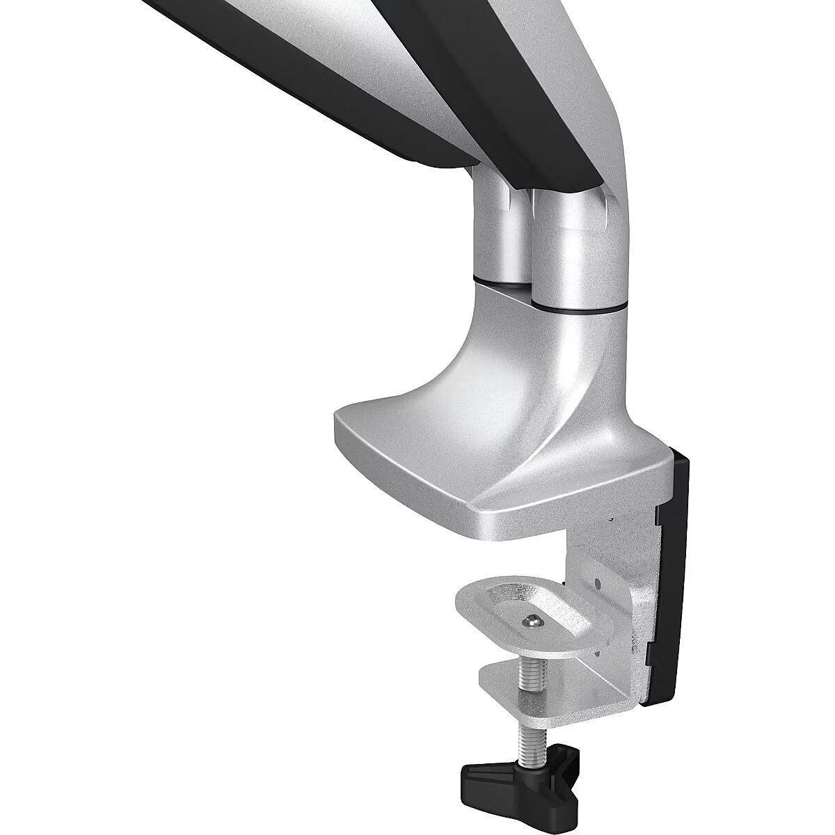 LongDesc - At your serviceThe IB-MS603-T is suitable for mounting two monitors with a size of 32" (81 cm). It is important that a maximum weight of 9 kg should not be exceed.With a fixed standUsing the screw this stand can be mounted on table tops with a maximum thickness of 85 mm. It's that easy to install a flexible and safe monitor standAt your commandNo matter how you prefer to work- there are various joints to bent the stand in many angles. Thus, the monitor can be directed exactly as you need it right away. One full rotation of 360° is possible, just like 90° and tilting as well.Reviews and AwardsHere you can find some Links to Reviews and AwardsShow all reviews
