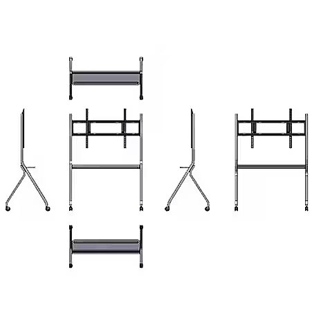 Do monitorów interaktywnych max. 105" Estetyczny, minimalistyczny design Półka przewidziana na akcesoria Maksymalne obciążenie podczas poruszania 100kg Regulacja wysokości montażu w zakresie 0-181 mm Stabilna konstrukcja Kółka umożliwiają wygodne i ciche przesuwanie statywu Blokada kółek zwiększa bezpieczeństwo instalacji Łatwy i wygodny montaż monitora na statywie W skład zestawu wchodzi wieszak do monitora
