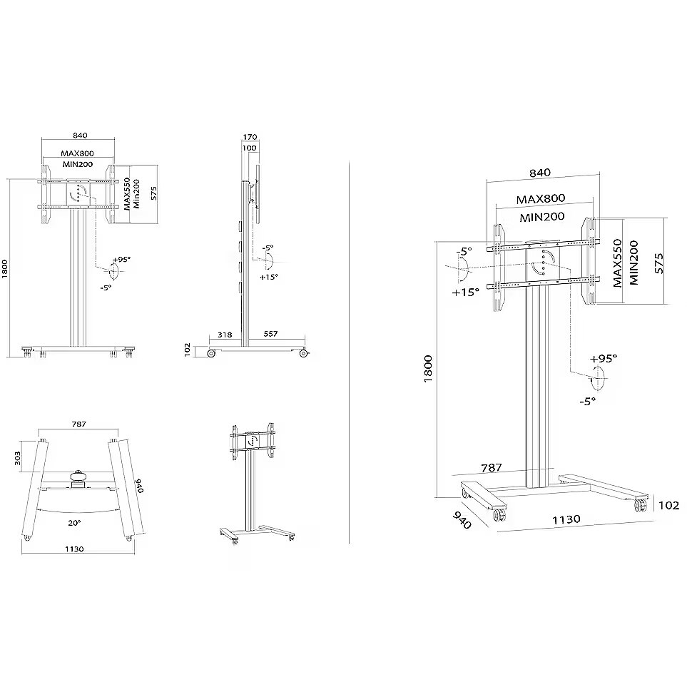 Description - M PUBLIC DISPLAY STAND 180 HD SINGLE BLACK, WHEELS