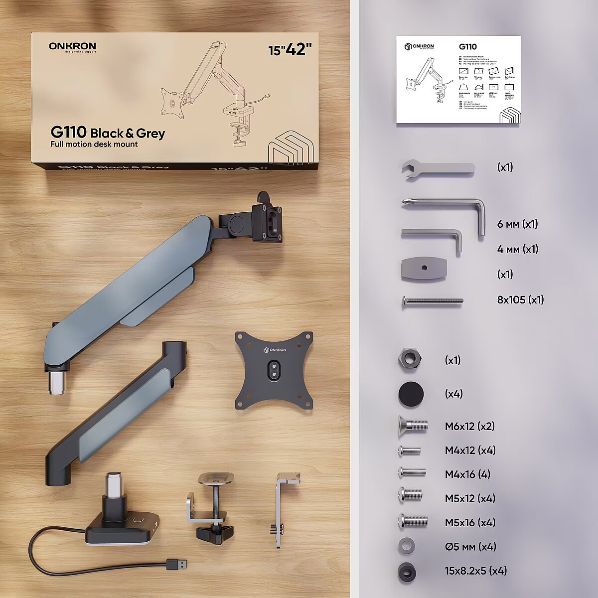 Description - ONKRON Desk Mount for Monitor 15"- 42", tilt-swivel, with rotation, max 15 kg, VESA up to 100x100