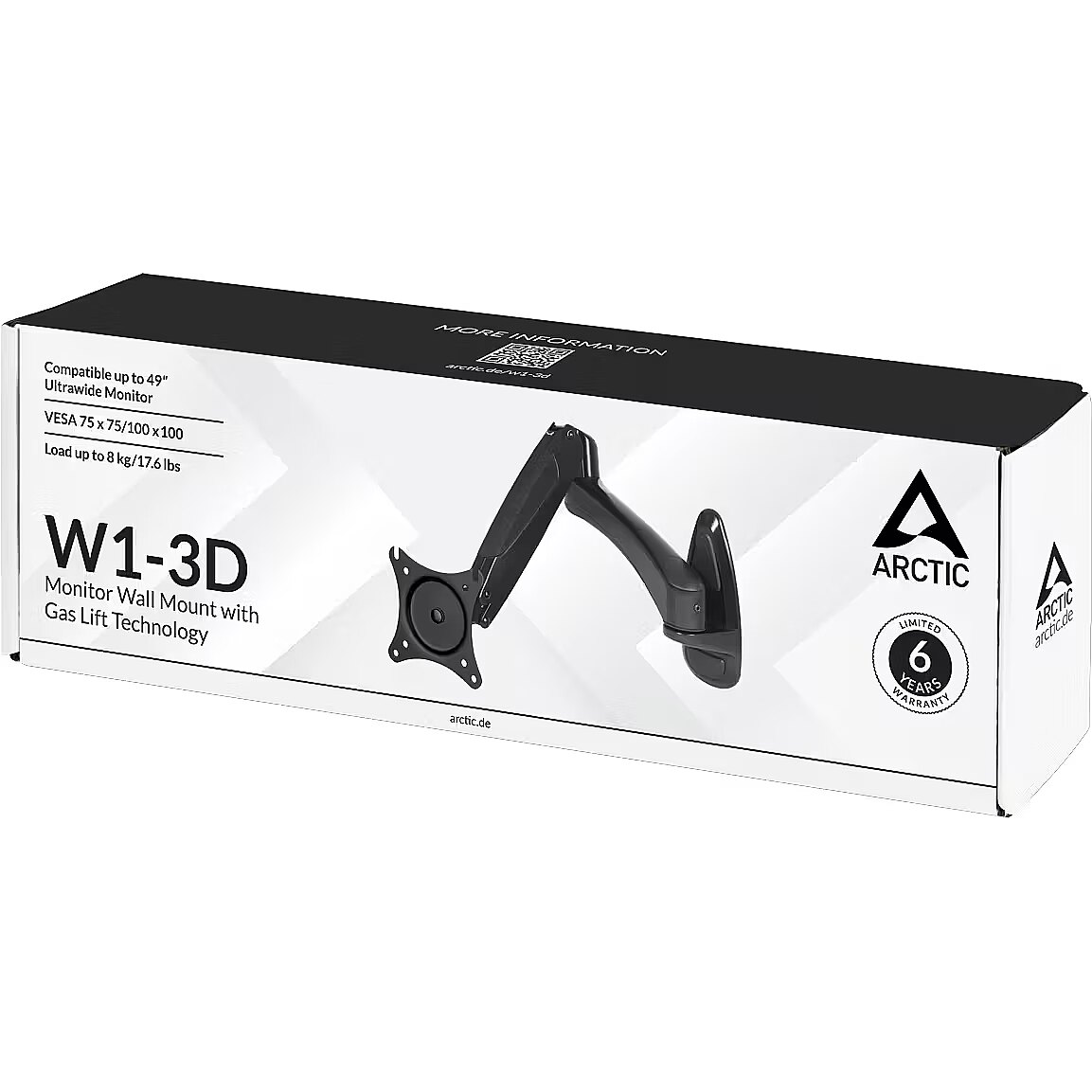 LongSummaryDescription - ARCTIC W1-3D - Monitor Wall Mount with Gas Lift Technology. Maximum weight capacity: 8 kg, Minimum screen size: 33 cm (13"), Maximum screen size: 81.3 cm (32"), Minimum VESA mount: 75 x 75 mm, Maximum VESA mount: 100 x 100 mm. Tilt angle range: -45 - 45°. Product colour: Black