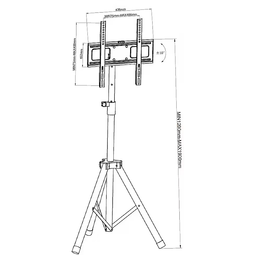 LongSummaryDescription - Techly Universal Floor Tripod Stand for 17-60" TV. Maximum weight capacity: 35 kg, Minimum screen size: 43.2 cm (17"), Maximum screen size: 152.4 cm (60"), Minimum VESA mount: 75 x 75 mm, Maximum VESA mount: 400 x 400 mm. Height adjustment range: 1200 - 1900 mm, Tilt angle range: -10 - 10°. Product colour: Black