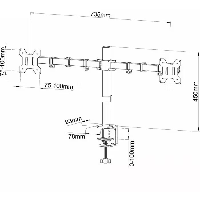 VESA tugi : 75 x 75, 100 x 100