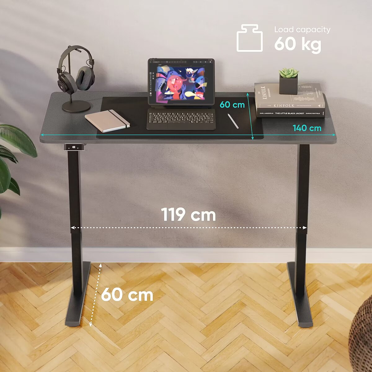 Description - Motorized Desk with Height Adjustment max 60 kg, Black WDT221E