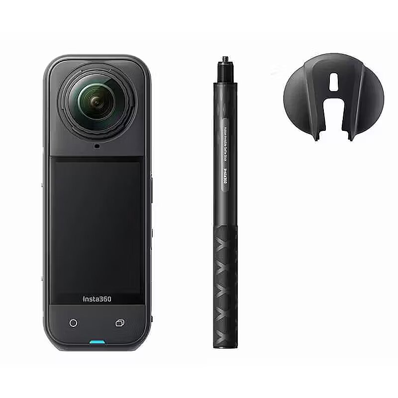 Description - Insta360 X5 360° 8K Camera (Snowboard Bundle) For Content Creators and Videographers 8K30/5.7K30 360° PureVideo Recording 360° Post Reframing, Even Longer Runtime Gesture Control, Dual/Single Lens Modes Bullet Time, Time-Lapse, InstaFrame Active HDR, Loop Recording, Me Mode 49' Waterproof, 72MP Photos App with Edit Suite and Effects Invisible Selfie Stick Feature Upgrade your production to cinematic 360° video with the powerful Insta360 X5 360° 8K Camera, capable of capturing HDR 8K30 360° with PureVideo enhanced low-light technology in dual or single-lens modes, all in one portable action camera. The X5 offers an action-ready design with AI-powered software for an intuitive approach to creating dynamic content in any environment, as well as "Bullet Time" capture, 180 Mb/s bit rates, time shift, loop recording, and time-lapse. The X5 also has an updated rugged design, is natively waterproof up to 49', and has an upgraded rechargeable 2400mAh battery for an increased runtime of up to 88 minutes.
