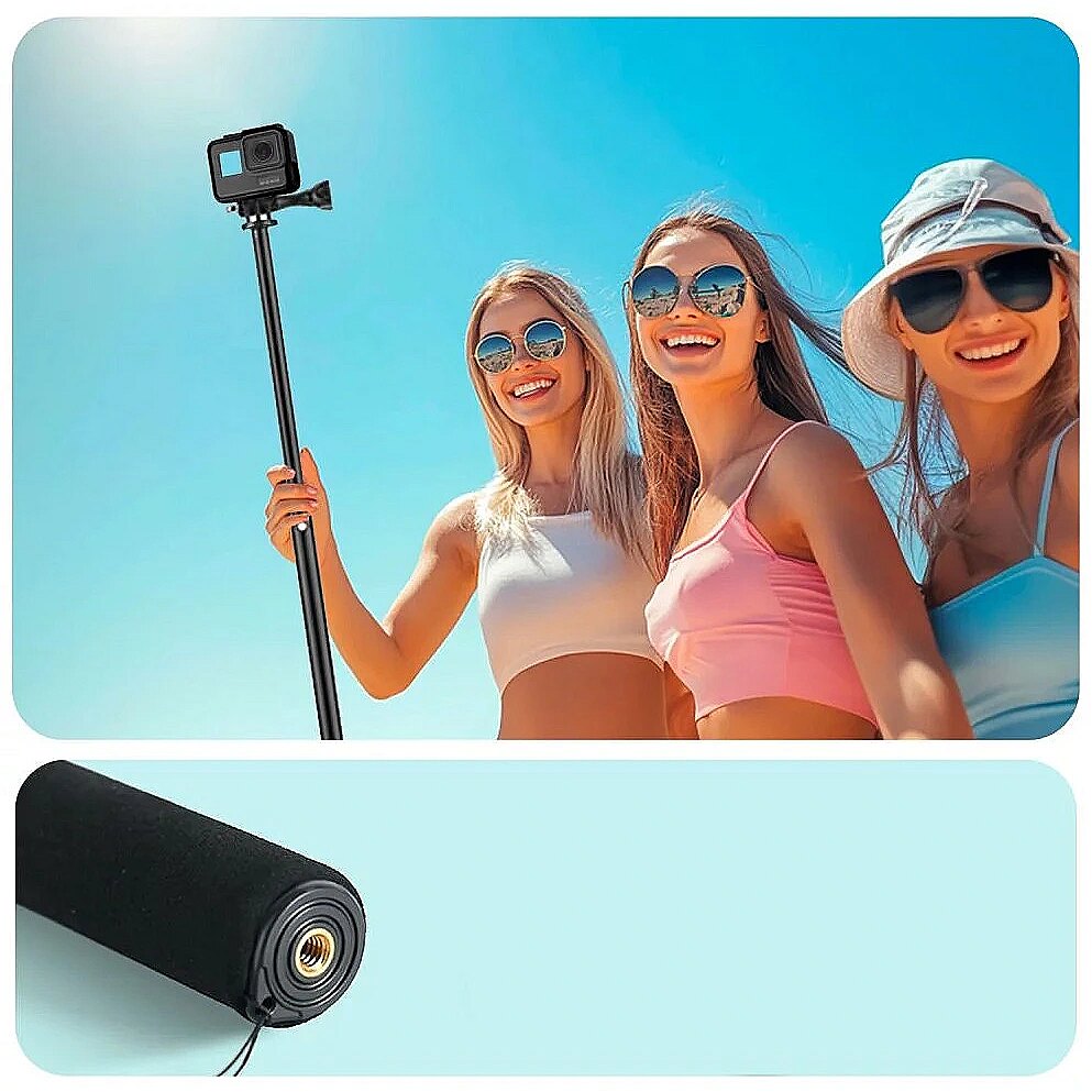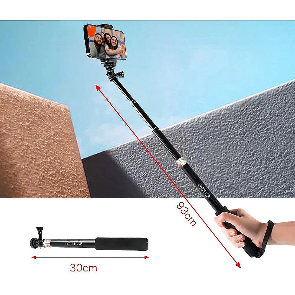 description_en - Tech-Protect The GA100 Monopad & Selfie Stick is the perfect solution for photography and filming enthusiasts who want to capture every moment from a completely new perspective. Thanks to its telescopic design with adjustable length, it allows you to comfortably adapt to any situation - from selfies to vlogs to wide panoramic shots. It is an indispensable tool when travelling, meeting friends or recording dynamic shots in the field. The monopad is characterised by its exceptional versatility - it is compatible with a wide range of devices, such as GoPro or DJI sports cameras, so you can capture the world around you in full perspective. The sturdy construction guarantees stability and safety during use, while a special telescopic lock prevents the section from accidentally slipping off. In addition, the non-slip finish ensures a secure grip even in difficult conditions. Whether you are documenting an unforgettable holiday, recording live coverage or creating content for social media, the GA100 will become your reliable companion, allowing you to fully unleash your creativity and produce professional shots in any situation. Stable Adjustable Lightweight aluminium construction Folded (length): 30 cm Unfolded (length): 93 cm