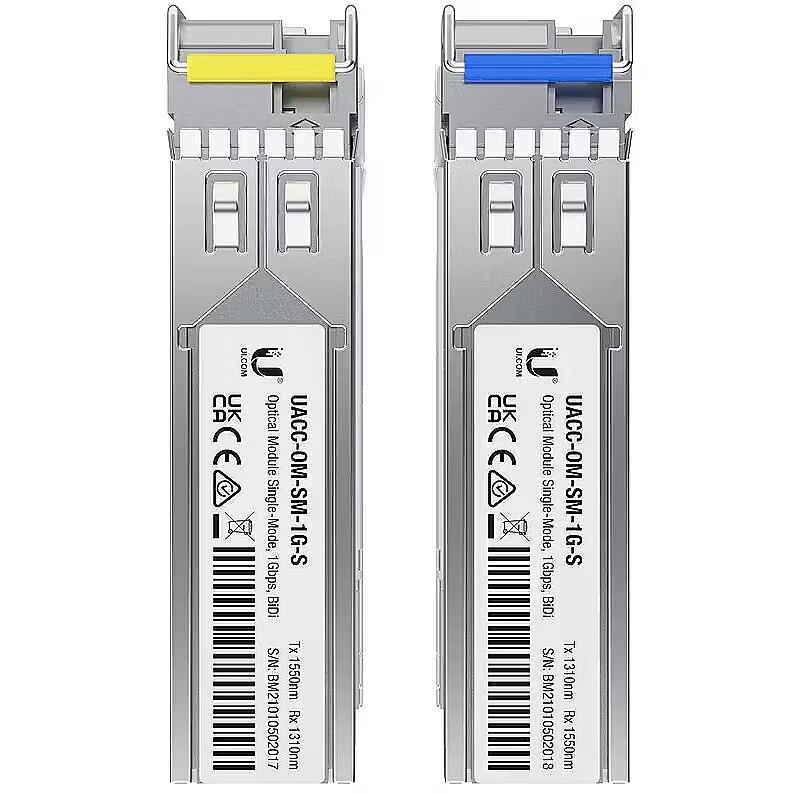 Description - Ubiquiti UACC-OM-SM-1G-S is a single-mode, simplex, fiber optic transceiver module. The 1 Gb/s bidirectional SFP optical module is a simplex transceiver that provides speeds up to 1.25 Gb/s at distances up to 3 km. The BiDi (BiDirectional) version is designed to leverage existing infrastructure. When using the BiDi version, a pair of modules must be used, as the pair uses two different wavelengths for bidirectional transmission over one fiber optic fiber (a separate length for each direction).