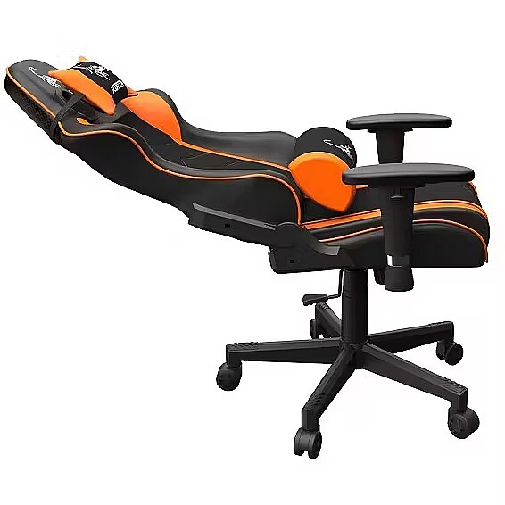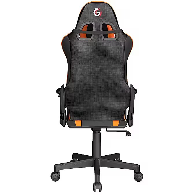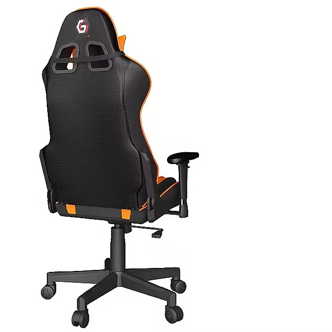 Description - Krzesło gamingowe Scorpion czarno-pomarańczowe Krzesło komputerowe z PVC Mocna nylonowa podstawa, gąbka w oparciu i zagłówku oraz formowana pianka wewnątrz siedziska Wentylowane siateczkowe siedzisko i przód Regulowany podłokietnik 2D Mechanizm uchylny, podnośnik gazowy i koła PU