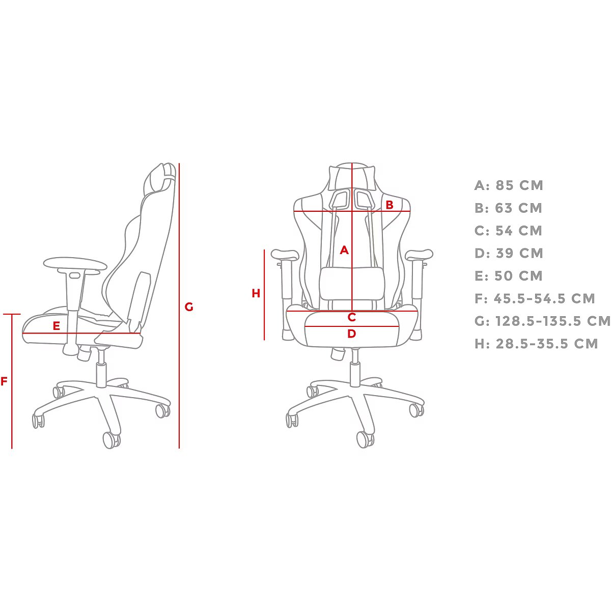 Kaal ja mõõtmed - Istme kõrgus (min) - 35 cm