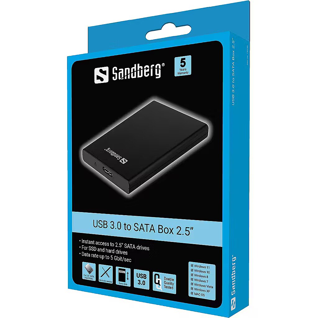 ShortSummaryDescription - Sandberg USB 3.0 to SATA Box 2.5'', HDD/SSD enclosure, 2.5", Serial ATA, 5 Gbit/s, USB connectivity, Black