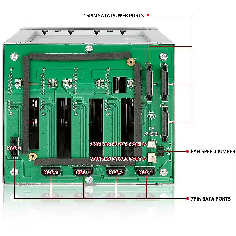 In addition, the backplane logic PCB has larger cut outs in key locations to allow more air to flow into and exit the MB155SP-B, making it an ideal system to store and cool your hard drives. Modularized Cooling System