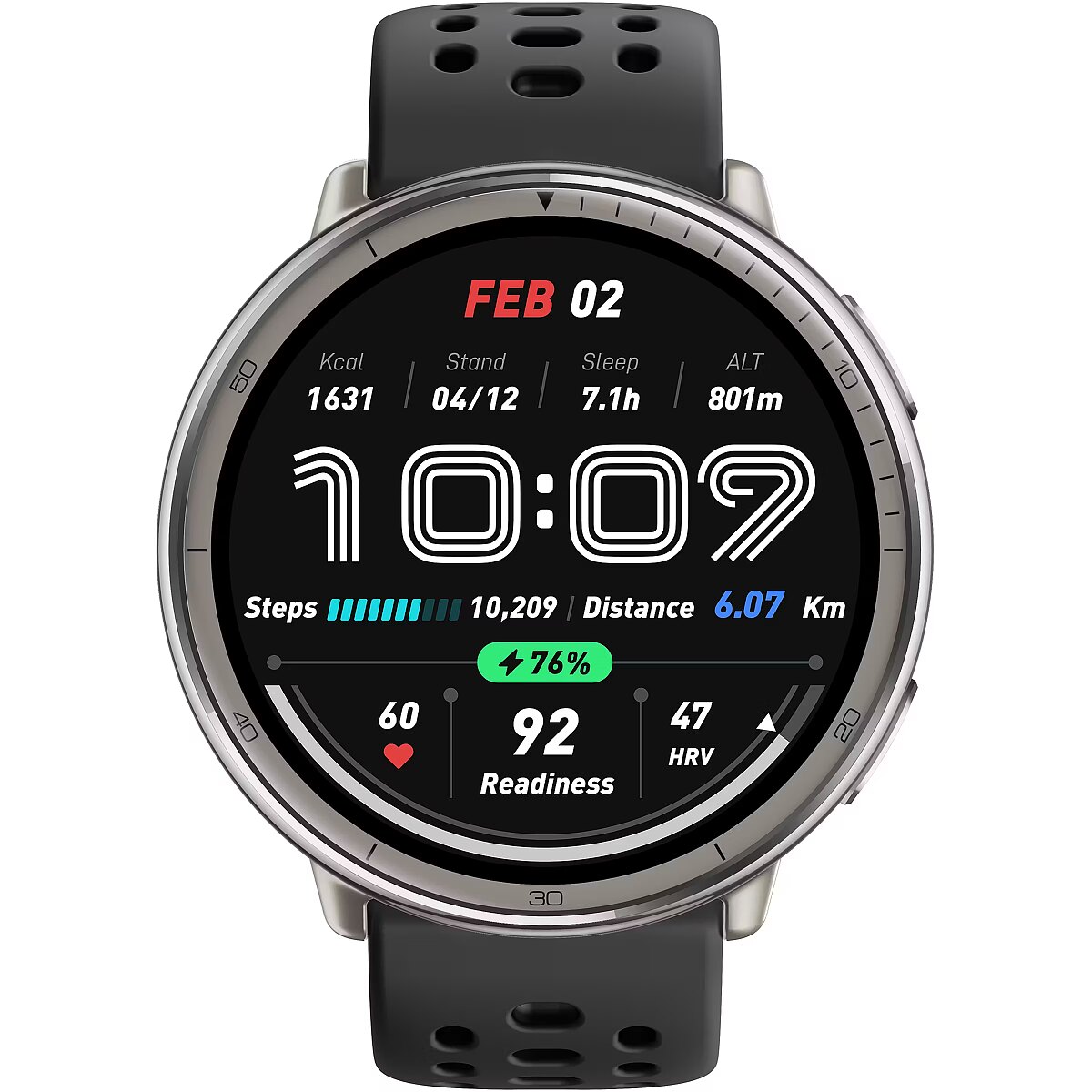 Amazfit BioTracker technology enables accurate real-time monitoring, including heart rate, sleep quality, and heart rate variability. The new PulsePrecision algorithm ensures accurate heart rate tracking during exercise, helping you optimally manage your performance. With one touch, you can measure four important health indicators at once: heart rate, stress level, blood oxygen content, and respiratory rate. 160+ Workout Modes and Smart Features