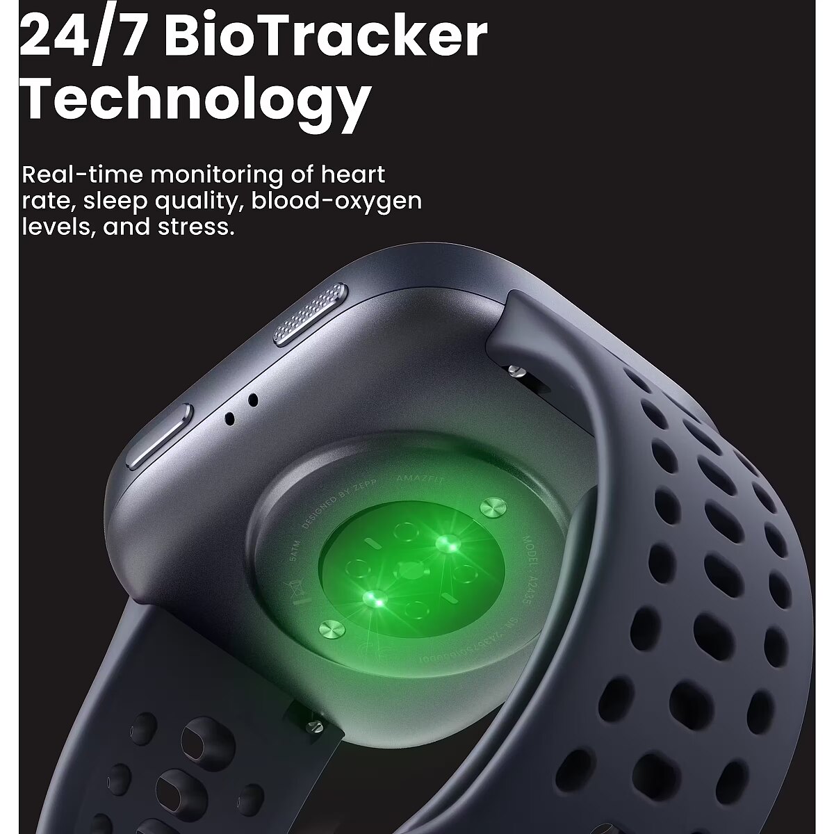 Download free maps for your outdoor activities, and get turn-by-turn directions as you go. Built-in GPS will accurately track your every move, with support from five satellite systems6 ensuring fast, reliable connection. Sleep & Health Tracking RestoreIQ: The new sleep tracking algorithm monitors your sleep with higher accuracy than the previous generation. Stay on top of your recovery with in-depth tracking of sleep quality, breathing, and stages, and even naps. Monitoring & Alerts: Monitor your heart rate, stress, blood-oxygen, and breathing rate on a 24/7 basis, and receive smart alerts for abnormal readings. One-Tap Measuring: Test your heart rate, stress level, blood-oxygen, and breathing rate simultaneously, for a quick overview of all four metrics in only 45 seconds. Recovery & Conditioning Readiness: Get an intuitive daily score that summarizes your mental and physical recovery, along with an insight on whether you should prioritize rest or activity today. Heart Rate Variability: See how your heart responds to life's stresses by tracking your sleep HRV—the time between heartbeats while you sleep. PAI Health Assessment: PAI uses your daily heart rate data to tally an ongoing score for the week. The more active you are, the higher the score. Achieving a weekly PAI score of 100 has been scientifically studied to lead to health benefits like reduced risk of hypertension. AI Assistance Total Voice Control: Zepp Flow gives you full control of your watch using just your voice10. Easily adjust settings, check your Zepp Coach progress, view your readiness score, and more - no tapping, swiping, or memorizing keywords needed. Message Replies: With Zepp Flow, you can type Android11 message replies using a full QWERTY keyboard or dictate them via speech-to-text input. Zepp Flow intelligently optimizes your reply with suggestions or translations and sends it seamlessly. New Notification Center: Catch your messages, news headlines, and sports updates, all in one place. Scroll through them with ease, or have Zepp Flow read them aloud to you. Women's Health Cycle Tracking: Get predictions and reminders for upcoming fertile and menstrual periods with the built-in Cycle Tracking feature. Plan ahead, stay active. Wild.AI: Turn your hormones into your superpower, with exercise, diet, and recovery recommendations from Wild.AI based on your menstrual and hormonal cycles. Connect12 to your Wild.AI account from your wrist, using Amazfit's exclusive mini app. Choose From Over 400 Free Watch Faces