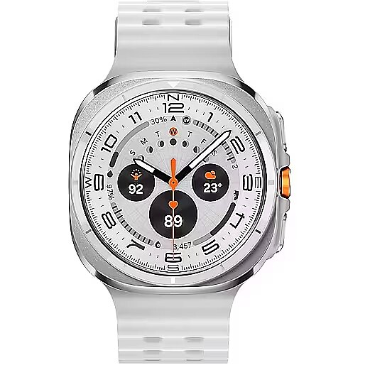 LongDesc - The toughest Galaxy Watch everImpact-ready cushion designTitanium shades. New in Blue.Galaxy Watch Ultra is available in Titanium Gray, Titanium Silver, Titanium White and now Titanium Blue. With performance bands to match, each finish makes a statement in the spirit of adventure.High-endurance battery powerOur longest-lasting Watch battery ever plus new power saving modes keep your health monitoring on-track for days even if you go off-grid.Bands for anything. One UI for everything.Gear up for every expedition with a range of band options for all terrains. With the new One UI 8 Watch, powered by an all-new processor, Galaxy Watch Ultra has you covered wherever you roam. At a glance in any lightWhen dark falls, Night mode keeps your info visible without straining your eyes. Perfect for preserving the beauty of the night sky when you're deep in the wild. Galaxy AIGalaxy AI iconKnow your score.Own your day.Start your day strong with a score that calculates your physical readiness based on yesterday's activity. Energy Score Galaxy AI analyzes key indicators of your overall condition and gives you a daily score so you can crush your goals. Power up cycling with Functional Threshold PowerWith a power meter paired with your Galaxy smartphone, Galaxy AI quickly estimates your Functional Threshold Power based on your own heart rate. Set your training intensity according to your FTP and hit your peak performance. Track heart stress while you sleepVascular Load monitoring shows you when there’s an increase in your stress level and the factors that affect it, like diet and sleep. Plus, it offers get targeted suggestions to improve and help protect against heart disease. Nourish and flourish with AGEs indexFor the first time on Galaxy Watch, see how your diet could affect your metabolic health with the new Advanced Glycation End-products (AGES) index. Monitor your meal choices, improve your lifestyle and maintain peak performance. In perfect sync with your phoneGalaxy Watch Ultra connects seamlessly with your Galaxy devices and comes LTE-enabled so you can leave your phone at home.Raise. Speak. Solved.Stay one step ahead of your day with a watch that helps navigate tasks and to-do lists. Need to send a text while on a run? Raise your wrist and speak your command and your Watch does the rest for you. Watch pairs with your Android smartphoneGalaxy Watch works seamlessly with Samsung phones and also works with other Android phones.Download the Galaxy Wearable and Samsung Health apps to get started using Galaxy Watch with your device.