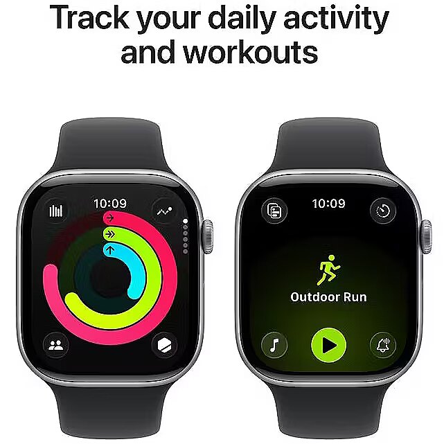 Whether you’re training for a marathon or swimming laps, Apple Watch Series 11 serves up endless ways to work out. And it uses helpful metrics to count every move, so you know how to push harder and train smarter. Let’s go — the starting line is on your wrist. A refreshed Workout app. An improved layout highlights four new corner buttons, making it even quicker to access your go-to features like Pacer, Race Route, and Custom Workout. Run circles around your Activity rings. Move. Exercise. Stand. The Activity app can track your daily activity. You can easily pause your rings or adjust your goals for each day of the week. To know you is to move you.