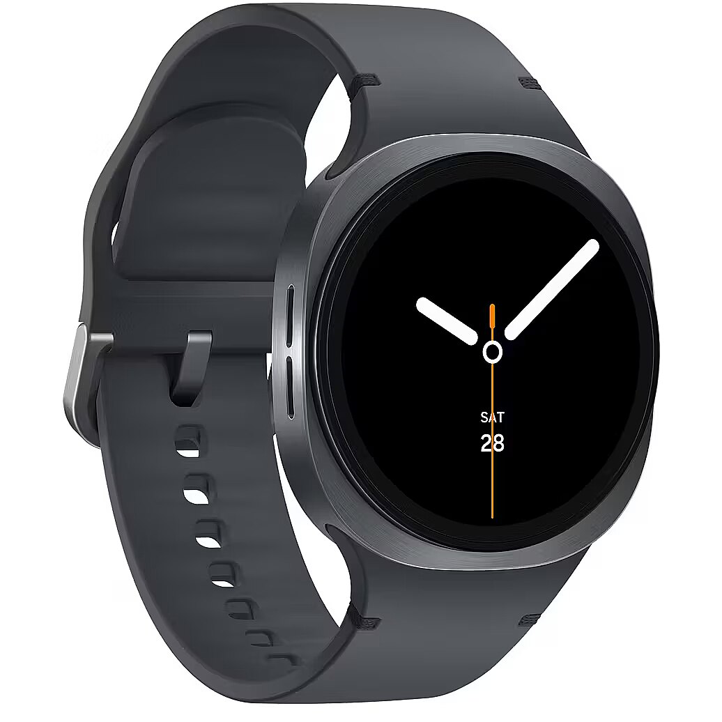 LongSummaryDescription - Samsung Galaxy Watch8 SM-L325FDAAXEF. Display diagonal: 3.3 cm (1.3"), Display technology: AMOLED, Display resolution: 438 x 438 pixels. Processor frequency: 1.6 MHz. RAM capacity: 2 MB, Flash memory: 32 GB. Wi-Fi. GPS (satellite). Battery capacity: 325 mAh. Weight: 30 g. Band material: Silicone, Band colour: Graphite, Band size: S/M. Operating system installed: Wear OS