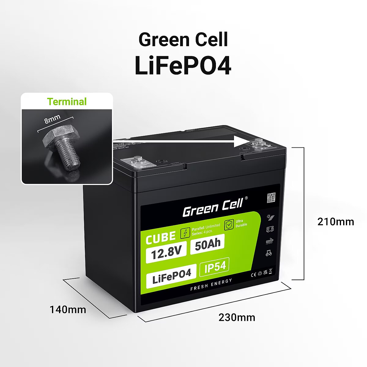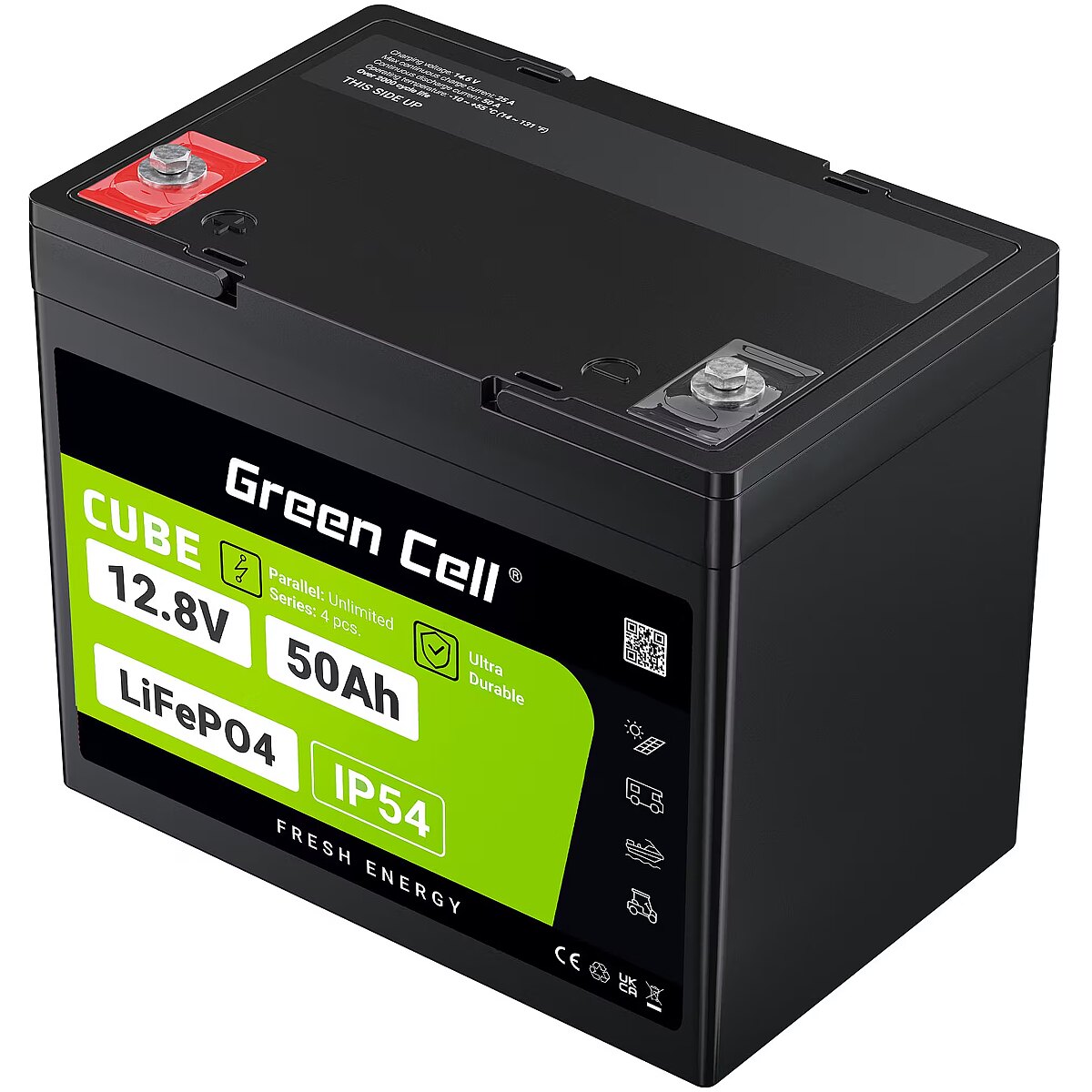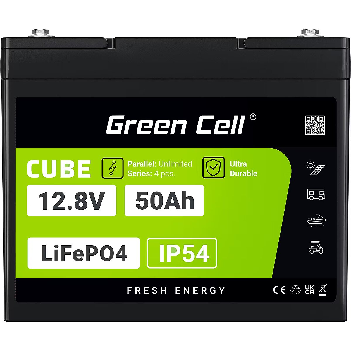 Green Cell CUBE LiFePO4 50Ah 12.8V 640Wh Lithium Iron Phosphate Battery for Camper, Golf Cart,Wind Power Plant