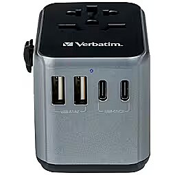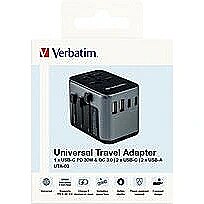 LongDesc - The Verbatim Universal Travel Adapter can be used in more than 180 countries – take it everywhere with you and never be out of power. This world-to-world multi plug will allow you to connect to any local power supply around the world and recharge your power-hungry devices, like laptops and camera batteries. The USB-C and USB-A ports on the bottom can charge all your USB devices including smartphones, Bluetooth speakers, tablets, power banks, and Kindles.Superfast 6-in-1 chargingThe compact and powerful Universal Travel Adapter allows six devices to be charged simultaneously through the AC power socket and the two USB-A and three USB-C ports.With a USB-C port that supports 30W Power Delivery (PD) and Quick Charge (QC) 3.0, it delivers superfast charging for your devices.Just push the sliders on the side of the multi plug to reveal the three most common international plugs - EU, UK, and US - and rotate the pins for sockets in Australia or China.Compact and SafeCertified by CE, UKCA, FCC and ROHS, and made with high quality fireproof polycarbonate material, this Universal Adapter is perfect for daily use during your trip.It has safety shutters for child protection that can only be opened with force of more than 75N (7.5Kg) per hole, and itsBS1362 compliant fuse (including a spare) gives you 100% peace of mind wherever you may go.