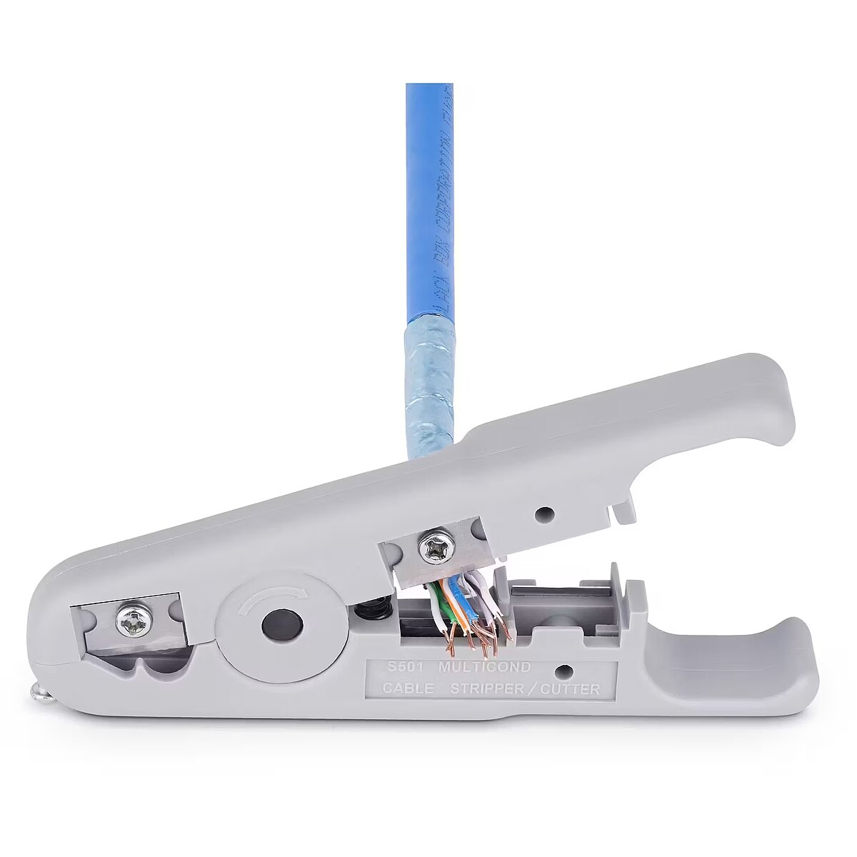 ShortSummaryDescription - StarTech.com Network Cable Stripper and Cutter, Professional Wire Stripper for UTP/FTP/STP/Coax Cables, Rotary Wire Stripping and Cutting Tool, Hand cable cutter, Grey, Grey, 7.5 mm, 0 - 50 °C, 105 pc(s)