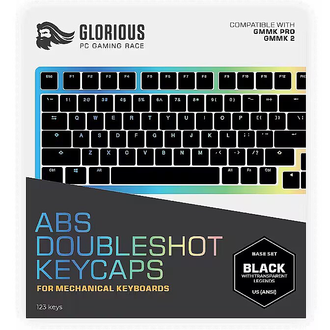 LongSummaryDescription - Glorious Gaming Doubleshot Keycaps V2. Product type: Keyboard cap, Device type: Keyboard, Brand compatibility: Glorious PC Gaming Race, Compatibility: GMMK, Material: Acrylonitrile butadiene styrene (ABS), Product colour: Black