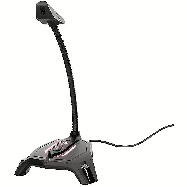 LargeDescHTML - Key featuresUSB gaming microphone with flexible gooseneckIdeal for use with Twitch, YouTube or voice chats while gamingStylish LED-illuminated base with easily accessible mute buttonLED indicator: light is on when microphone is active and off when mutedCompact size: takes up little desk spaceAnti-slip rubber feet provide stability140cm cable length Compact Gaming Microphone Let yourself be heard – whether it’s by your followers or your teammates. The Zabi LED-Illuminated USB Gaming Microphone is a handy desk microphone that captures and streams you at your best. Small in size but big in functionality and style, this microphone is fitted with a few convenient design details. It makes recording, streaming or voice chatting a breeze. Easy Talking Record new content, direct your team mates whilst gaming, or host an online meeting; you can use the Zabi for all your streaming, gaming and recording needs. If you find that your hands do a lot of the talking, the non-slip LED-illuminated base provides great stability and the mute button is easily accessible if you don’t want to be heard for a while. Smart Features The Zabi’s got all the features you’d want from a desk mic, which makes it so super smooth to operate. Its flexible neck can be moved into any position so that you can comfortably settle down for a chat wherever you like. What’s more, it comes with a 1.4m USB cable, so you can set it up in any corner of your desk. The LED light on the button indicates when you can be heard; it comes on when the microphone is active and turns off when you are muted.