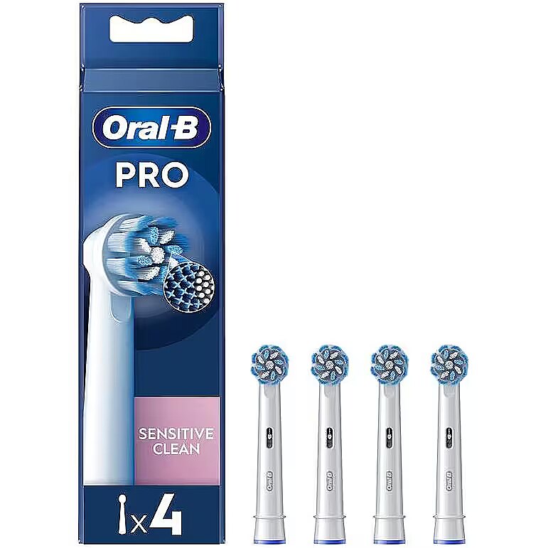 MediumDescription EN - Oral-B Sensitive Clean Pro - extra brushes for your electric toothbrush. The Oral-B Sensitive Clean Pro toothbrush has extra soft bristles that protect the gums and regular bristles that effectively remove plaque. It removes up to 100% more plaque and reduces gingivitis by 100% compared to a manual toothbrush. Oral-B's unique toothbrush heads are designed with new X-shaped bristles that reach hard-to-reach areas. The tip bristles change color from green to yellow, reminding you when the tip needs to be replaced to maintain 100% cleaning efficiency. Guaranteed compatibility with all Oral-B rechargeable electric toothbrush handles, except Pulsonic and iO. • Removes up to 100% more bacterial plaque for cleaner teeth and healthier gums compared to a manual toothbrush;