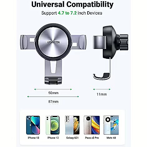 URL - https://eu.ugreen.com/products/ugreen-car-phone-holder-gravity-air-vent-auto-lock-mobile-stand-adjustable-mount-super-stable-cradle-compatible-with-iphone-13-pro-max-12-11-xs-xr-8-se-3-galaxy-s21-fe-s10-s9-a71-huawei-p40-redmi-10