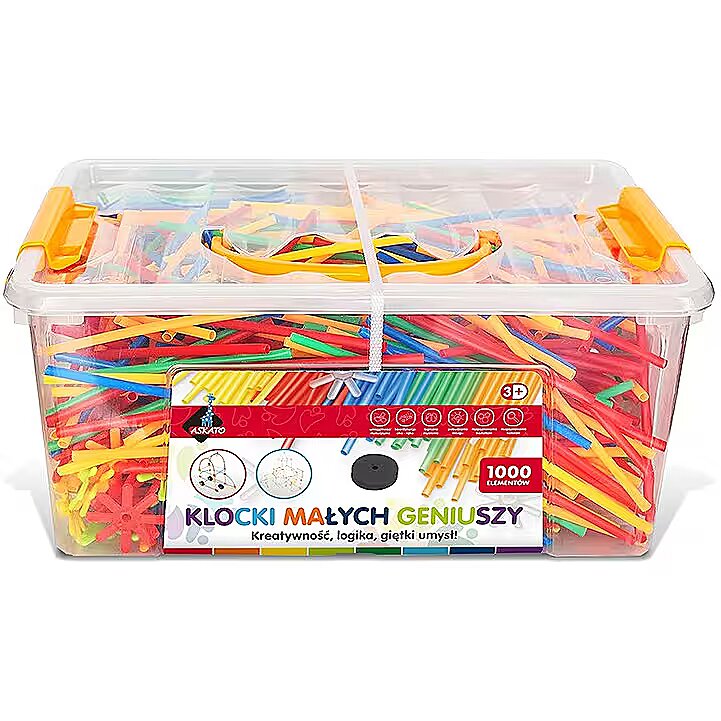 Kirjeldus - Klotid väikestele geeniustele – väikesed õled Klotid – pulgad, mida ristide abil saab kombineerida erinevateks kujunditeks. 238 tükki erinevates värvides. Pulga mõõtmed 10x0,3 cm.