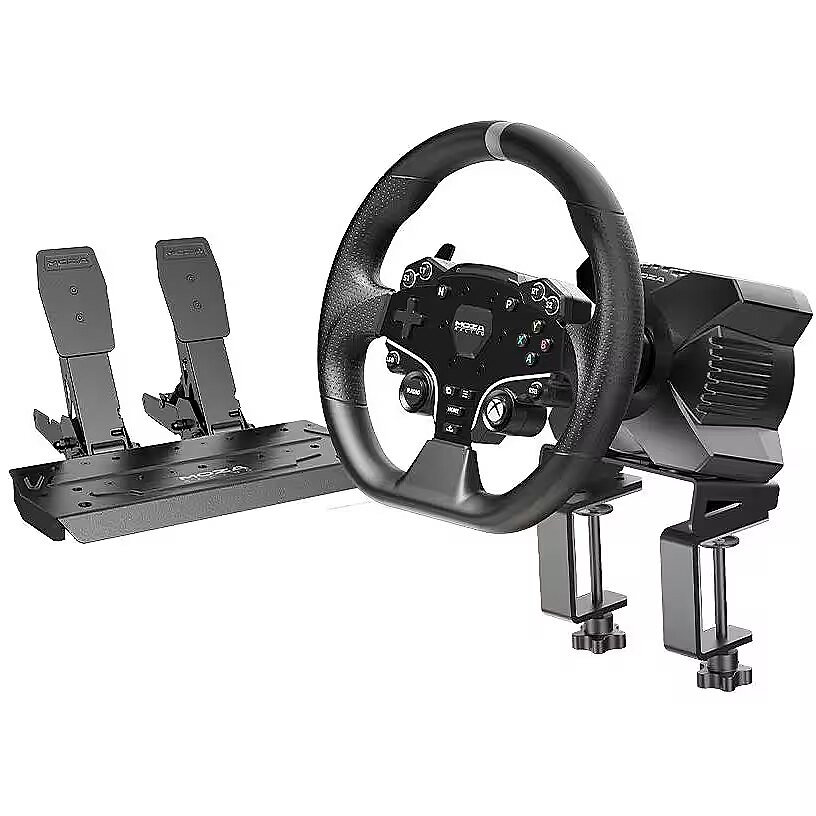 LongSummaryDescription - Moza Racing R3 Bundle For XBOX & PC. Device type: Steering wheel + Pedals, Gaming platforms supported: PC, Xbox One, Xbox Series S, Xbox Series X, Gaming control function buttons: Home button. Connectivity technology: Wired, Device interface: USB. Product colour: Black, Housing material: Aluminium, Releasing method type: Quick release. Power source: Cable, Input voltage: 110 - 220 V. Width: 280 mm