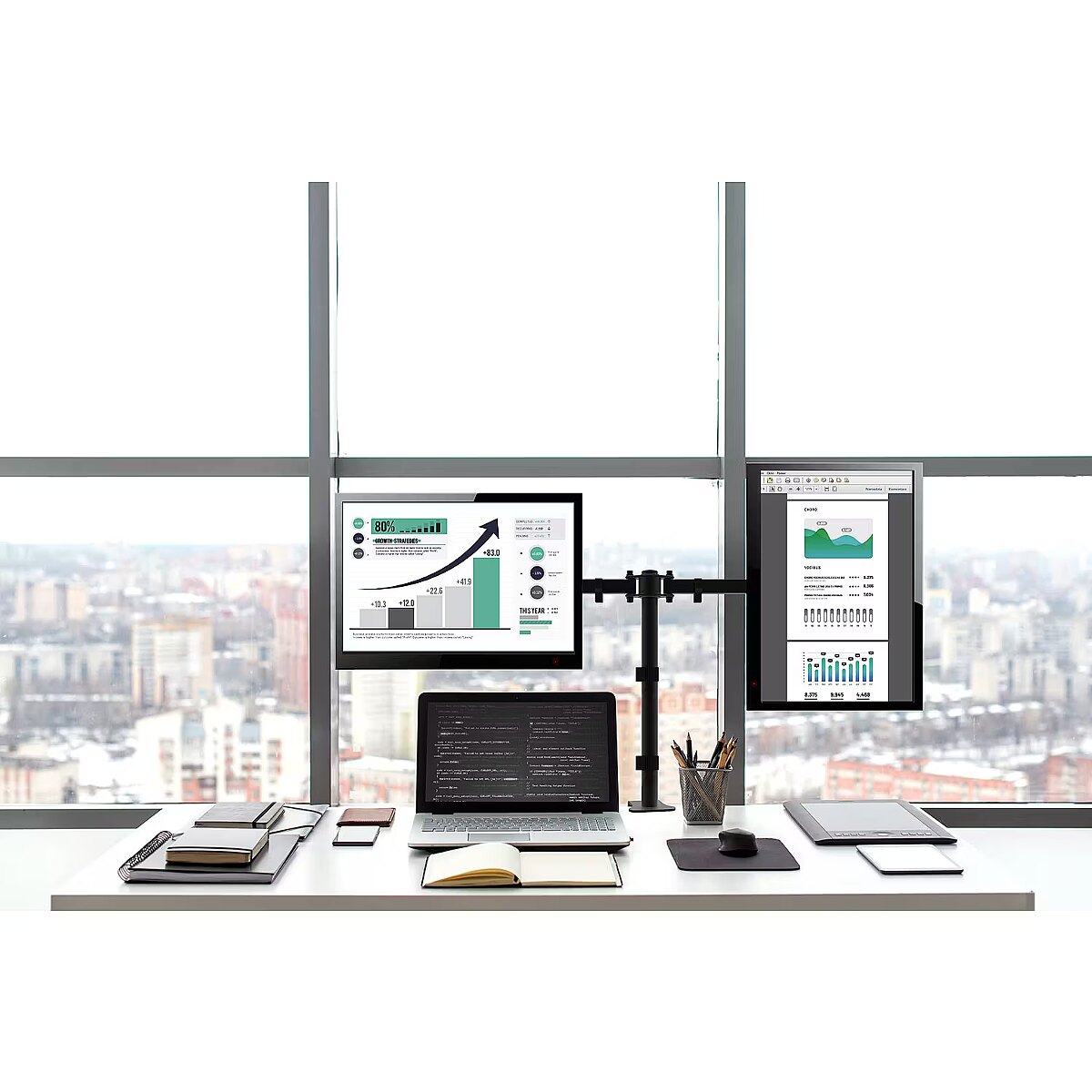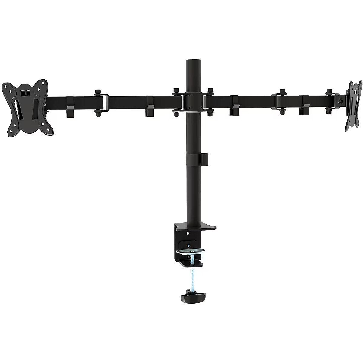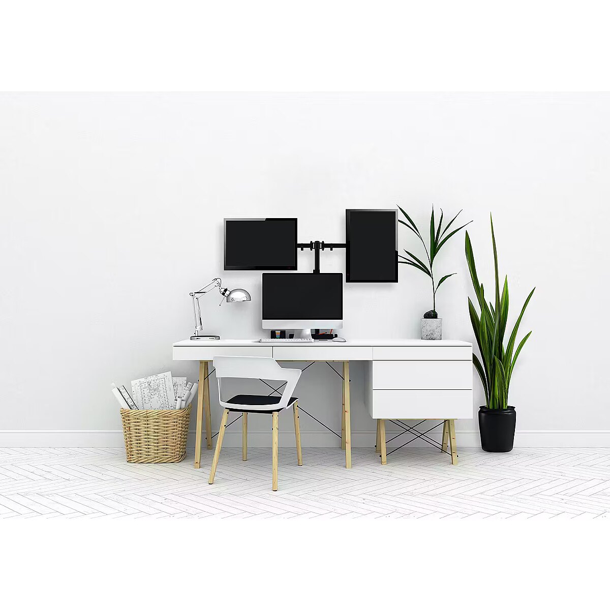 For mounting two TFT / LCD / LED monitors with screen diagonal of 13–27" Compatible with VESA screens: 75 × 75 &100 × 100 Integrated cable management Quick and trouble-free installation Maximum height: 400 mm Extendable up to 420 mm Rotate 180 ° and tilt -70 ~ 70 ° Maximum load: 8 kg