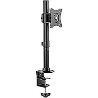 Technical_details - HA Tablemount KB Single, monitor mount The HA Tablemount KB Single is a tiltable, swiveling and height-adjustable table mount for a monitor between 38 - 68 cm (15 - 27"), which is also suitable for wide or curved screens. The screen can be mounted in portrait or landscape -Alignment take place and can also be changed at any time. The assembly can be done either via a table clamp or as a screw assembly. When using the clamp assembly, plate thicknesses of 10 to 88 mm are possible, the screw assembly can be used with table tops of 10 to 80 mm. The screen can be Tilt ± 45° and swivel ± 45°. The height can be varied between 100 and 450 mm on the assembly side. Cables can be laid neatly and space-savingly in clamps on the back. The surface of the bracket is finished with an impact and scratch-resistant black powder coating. Type: Monitor Mount Color: Black EAN: 4250058587060 Manufacturer number: 8706 To hold/attach: from | monitors To hold/attach: on / on | tables Suitable for: monitors Type of fastening: screw fastening, clamping device Max dimensions: screen size | 38 - 68cm (15 - 27") Ergonomics: angle of inclination | From +45 ° to -45 ° Ergonomics: Tiltable | Yes Ergonomics: Rotatable | ±180° Load capacity: 10 kg (1 x 10 kg) Number of supported devices: 1 Further information: 10 - 88 mm tabletop thickness