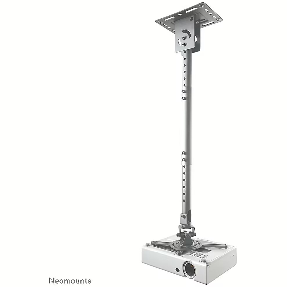 LongDesc - The Neomounts projector ceiling mount, model BEAMER-C100SILVER is a universal tilt-, swivel and/or rotatable ceiling mount for projectors up to 15 kilograms. This mount is a great choice for an optimal viewing experience. This versatile, ready to install mount, offers the convenience of installation to the ceiling without the need of additional accessories.Neomounts versatile tilt (40°), rotate and/or swivel technology allows the mount to change to any viewing angle to fully benefit from the capabilities of the projector. The mount is height adjustable from 58 to 83 centimetres. An innovative cable management conceals and routes cables from ceiling to projector. Hide your cables to keep the installation nice and tidy.Neomounts BEAMER-C100SILVER has two pivot points and is suitable for most projectors. The weight capacity of this product is 15 kilograms. This universal ceiling mount is easy to install and suitable for projectors using the mounting holes on the bottom side of the projector. The legs included with this mount, cover most projector hole patterns.Projector mounts are ideal for use in offices, schools, hospitals or at home. All installation material is included with the product.