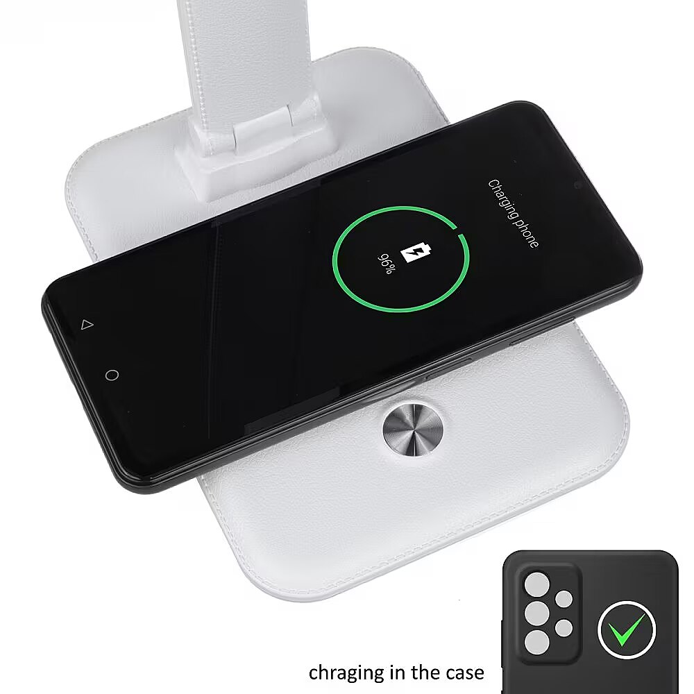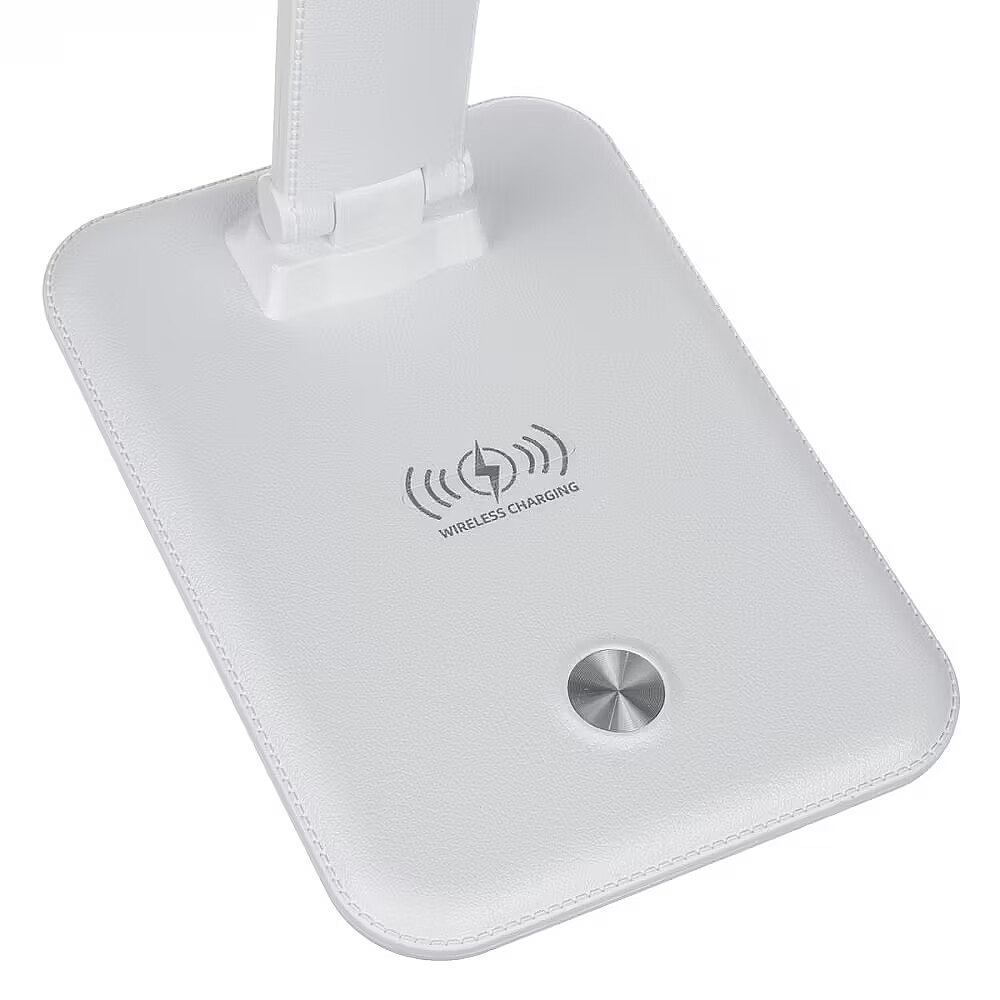Muud omadused - LED-valgustuse värvi reguleerimisvahemik: 3000 / 4500 / 6500 K Sisseehitatud astmeteta dimmer Valgusvoog: maks. 450 luumenit Nimetisvõimsus: 9 W Energiatõhususklassiga F valgusallikas LED-i eluiga: 20000 tundi Valgustamisnurk: 120° Kaitseklass: IP20 Toitekaabli pikkus: 120 cm Qi juhtmeta laadija: Väljund: 5 V / 1 A | 9 V / 1,1 A Väljundvõimsus: 10 W | 7,5 W | 5 W