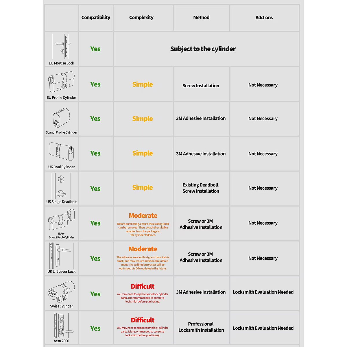 Designed to fit existing locks without drilling or modifications. Compatible with Euro-profile and select Scandinavian cylinders.