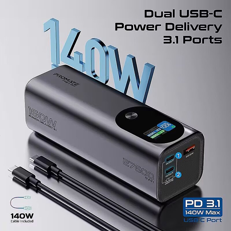 title_en - Promate Titan-160 Power Bank 160W / 27600mAh / USB-C PD / QC3.0