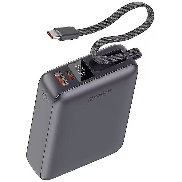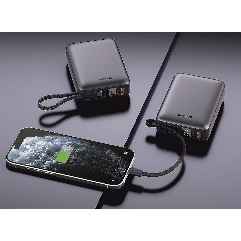 Swissten Power Bank 20000 mAh 45W with Built-In USB-C Cable