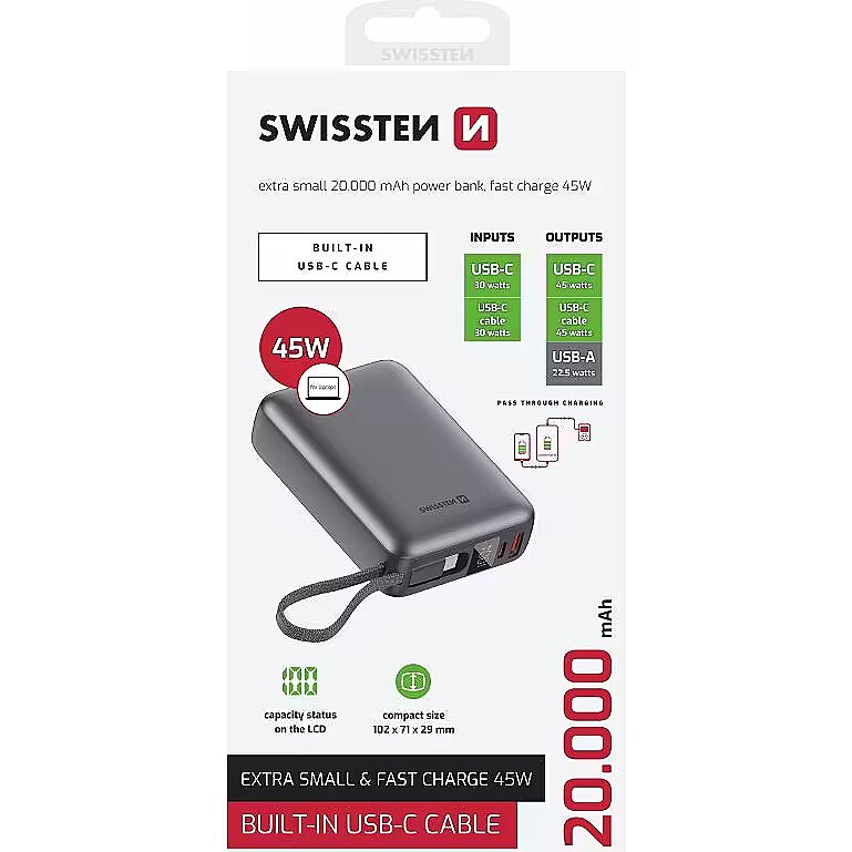 title_en - Swissten Power Bank 20000 mAh 45W with Built-In USB-C Cable