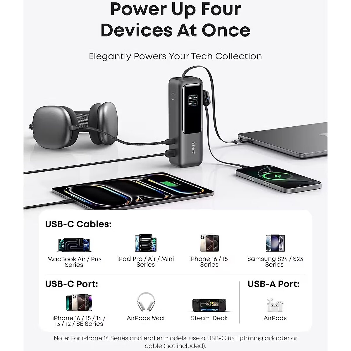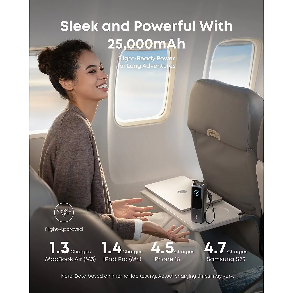 Anker Power Bank 25K 165W Built-In USB-C and Retractable Cable