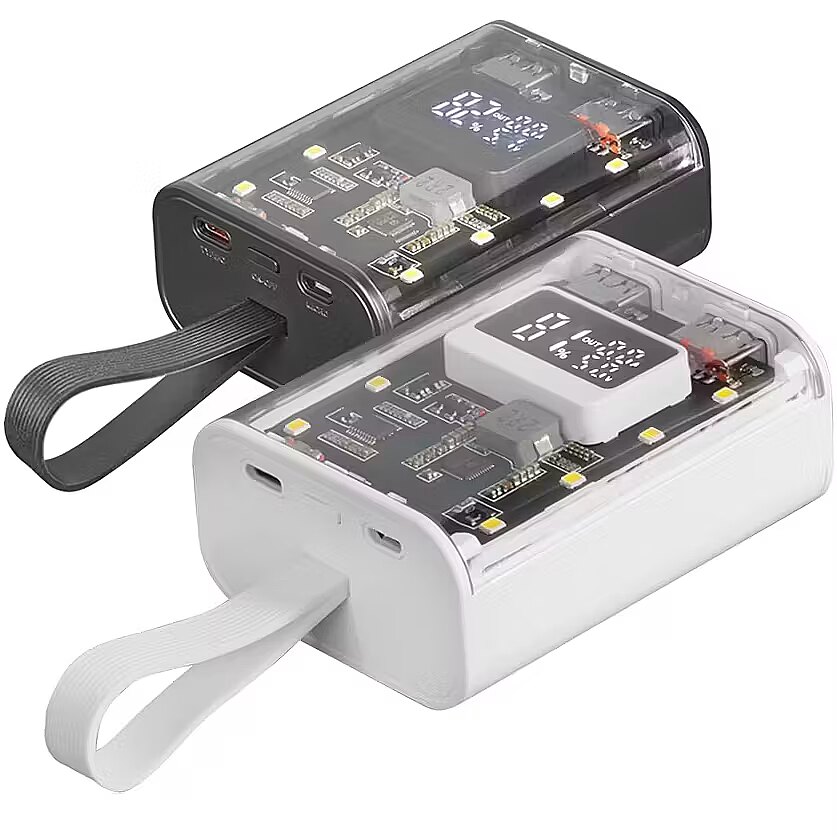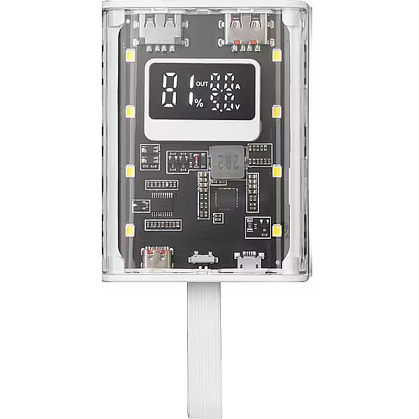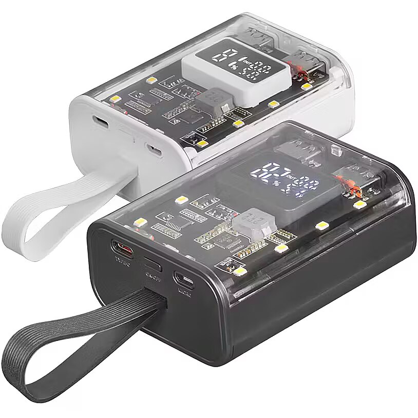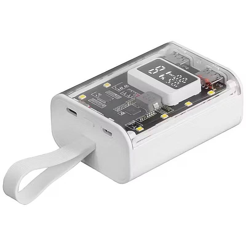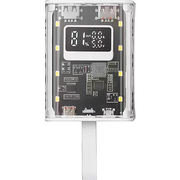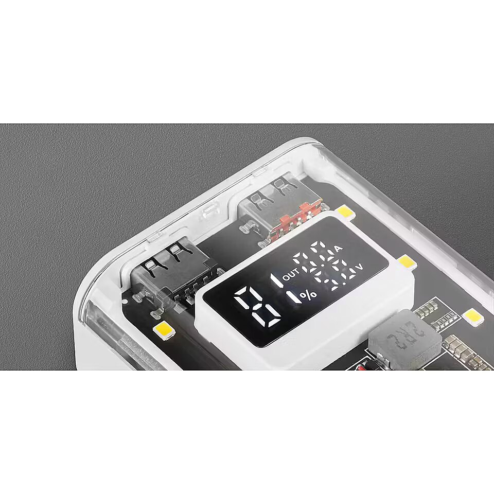 LongDesc - The MPK-10K is a revolution in portable battery design and functionality. With its distinctive transparent design and compact size, this 10000mAh 22.5W power bank offers ultra-fast charging with QC3.0 & PD3.0 technology. Featuring a powerful LED flashlight and strap for easy carrying, a display to monitor battery status, universal compatibility and the ability to charge up to three devices simultaneously, the MPK-10K is ideal for those on the go.STYLE AND COMPACT FUNCTIONALITYDiscover the perfect balance of sophistication, technology and practicality with the MPK-10K power bank. Its unique, compact design features a transparent casing that reveals the internal electronics, offering an exceptional charging experience unlike any other portable battery.AVAILABLE IN TWO VERSIONSBLACK OR WHITEChoose yours!REVOLUTION IN FAST CHARGING AND SIMULTANEOUS CHARGINGThe MPK-10K offers a fast and safe charging experience. Incorporating advanced QC3.0 & PD3.0 technology, this 10000mAh 22.5W portable power bank ensures ultra-fast and efficient charging. Plus, you can charge up to three devices simultaneously. Connect and charge your phone, tablet and headphones at the same time and make sure they're always available and ready to go. INTELLIGENT BATTERY MONITORINGLeave behind worries about the charge level of your power bank. The MPK-10K comes equipped with a smart display that informs you in real time about its charging status. This innovative feature gives you peace of mind and full control over your device, making it easier to organize your day-to-day life with the assurance that your power bank will always be ready when you need it.VERSATILE CONNECTIVITYEquipped with 2 USB-A ports, a USB-C port and microUSB, this power bank offers wide compatibility with your phone, tablet or any other device. The MPK-10K allows you to always have your devices at your disposal when you need them.POWERFUL LED FLASHLIGHTThe MPK-10K redefines portable battery functionality with its powerful, integrated LED flashlight. Equipped with multiple lighting modes, including an emergency flashing mode, it makes for an exceptionally versatile device, ideal for tackling everyday situations.COMPACT TRANSPORTABLE SIZEIts compact design makes it perfect for travel, hiking, or just everyday use. With an integrated strap for easy carrying, the MPK-10K is easy to take with you wherever you go, combining convenience and functionality in one device.