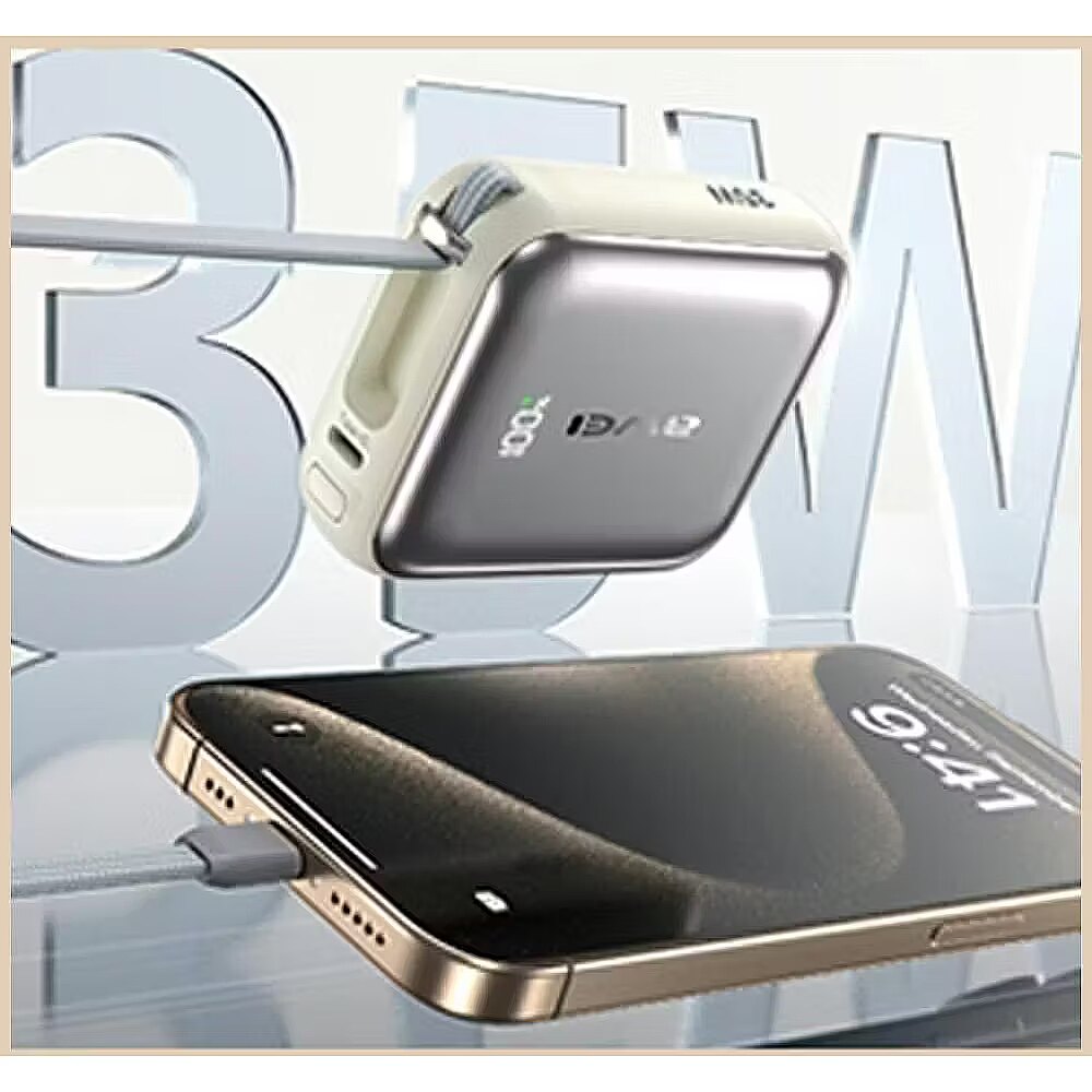 Other features - Maximum charging power 35 In Fast Charging Built-in dual cables (Lightning + USB-C) Display digital LED level of charge Protection against overheating, overloading, overloading and short circuit Double 2-in-1 cable, fast charging, charging three devices at the same time
