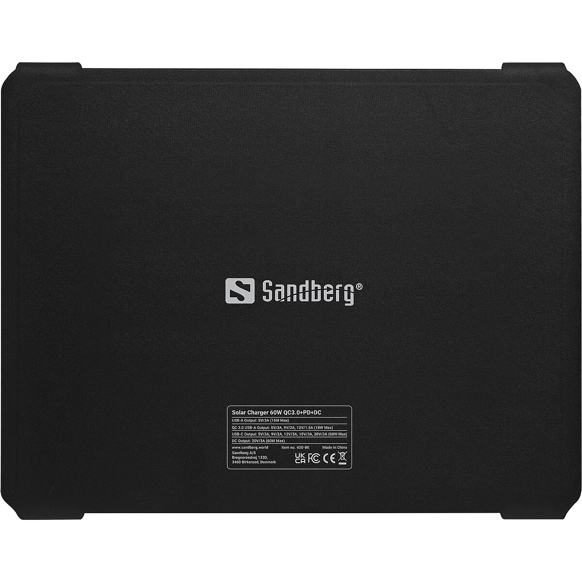 LongDesc - Sandberg Solar Charger 60W is a compact solar panel with strong performance. The foldable solar panel unfolds into 4 Monocrystalline solar panels giving you a combined output of up to 60W. On the panel’s control box you will find 3 fast ports:- USB-A with QC 3.0 support- USB-C- DC 5521It gives you an abundance of connectivity with optimal charging speed for smartphones, tablets, and powerbanks, etc.The supplied snap hooks can for instance be used for attaching the solar panel to your backpack when you are on an adventure. This is green energy for your equipment!