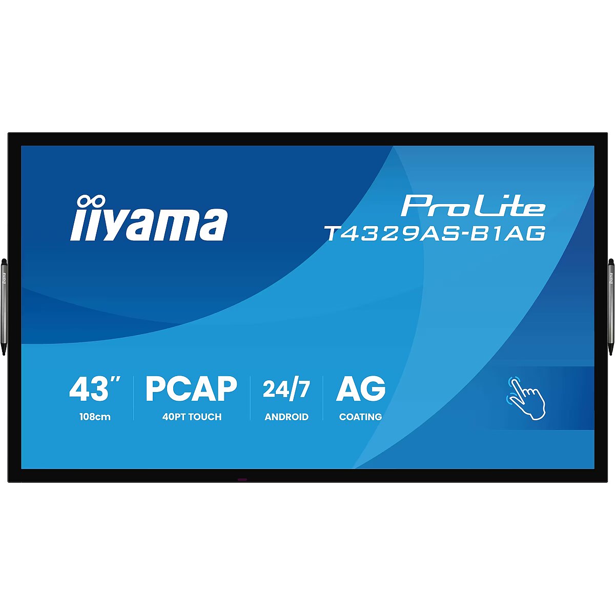 LongDesc - The ProLite T4329AS-B1AG is a 43" all-in-one PCAP touchscreen display built for the evolving needs of modern workspaces, especially huddle spaces where creativity, flexibility, and seamless sharing take center stage. Powered by Android OS, this interactive display delivers a user-friendly and highly adaptable experience. You can install your preferred apps directly on the device, enabling customized workflows tailored to your environment — whether in a collaborative meeting area, an enterprise innovation hub, or an educational breakout room. The USB-C loop-through feature simplifies connectivity by allowing multiple displays to be easily daisy-chained while transmitting power, data, and video — all through a single cable. This reduces cable clutter and setup time, making it ideal for dynamic workspaces. The included wall mounting bracket makes installation straightforward and secure. With iiSignage² (CMS), iiControl (DMS), and iiShare (Wireless Presentation) you gain full control over content and messaging, even remotely — perfect for updating shared information or branded visuals on the fly. The integrated EShare app brings wireless screen sharing and collaboration to life, supporting multi-user interaction and real-time ideation. The T4329AS-B1AG isn’t just a display — it’s a collaboration tool designed to empower teams, streamline communication, and make every meeting count.