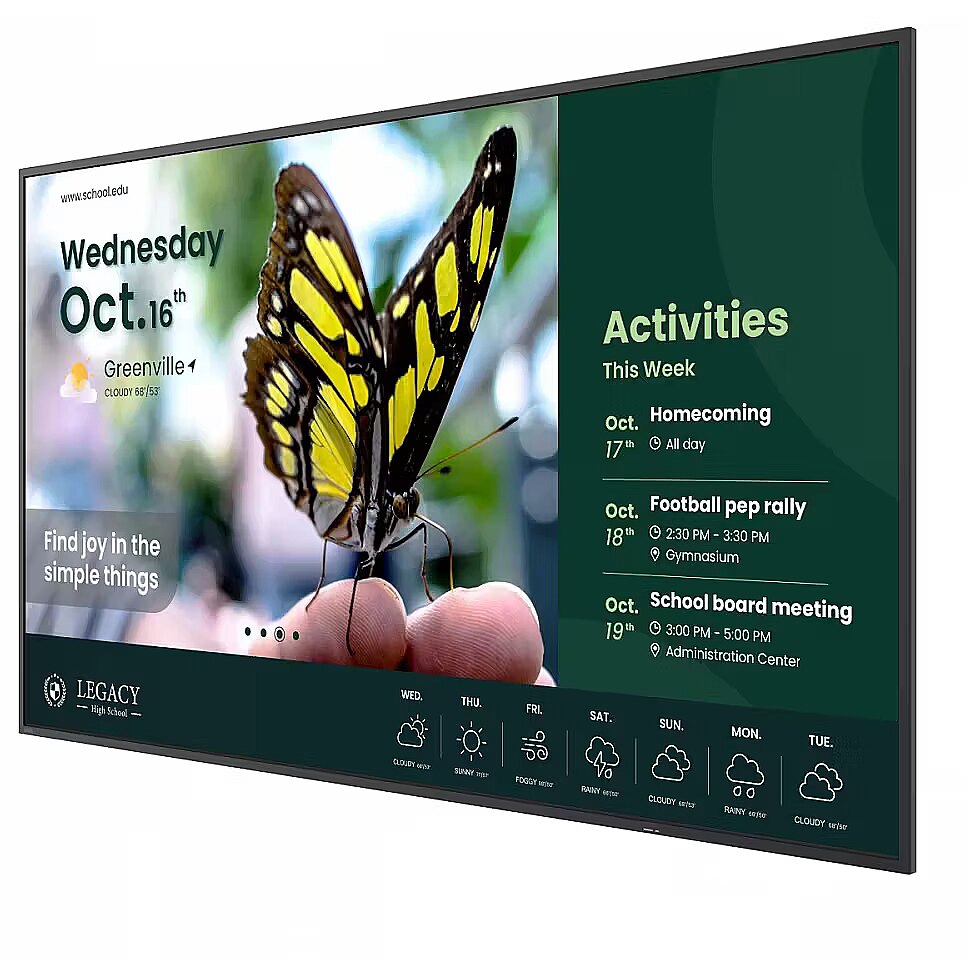 LongDesc - Your essential signage solutionBoost school communication with the ST04 4K Smart Signage series. Its advanced hardware, intuitive tools, Android OS, and security features help you deliver clear, effective information to support your educational goals and streamline operations.Reliable performanceExperience vivid visuals, 18/7 operation, and both portrait and landscape display modes..Easy controlEnjoy quick and easy content management and remote device control.Robust securityEnsure your displays stay safe with the ST04’s hardware and software security features.Digital signage done rightYour message made clearThe ST04 series features a 350-nit, 4K display, 10-bit color depth, and 18/7 operation, ensuring bright, vibrant visuals for cafeterias, hallways, libraries, and more.Portrait and landscape readyEffortlessly mount the VESA-compatible ST04 in either portrait or landscape orientation, making it ideal for different types of content and applications.Designed for eye comfortEnjoy enhanced viewing comfort and clearer visuals with an anti-glare screen featuring a 25% haze value that eliminates reflections to minimize eye strain.Truly immersive soundThe ST04’s powerful, two 12W speakers deliver captivating audio, bringing your content to life.Always at the readyWith the easy-to-enable Wake on HDMI and Wake on LAN, the ST04 is always ready when you need it.Sleek from every angleThe slim, uniform bezels on the ST04 ensure a seamless installation that blends into any environment.Deliver your messages anywhereCreate, manage, and deliver engaging signage content across school with the powerful X-Sign content management platform.Easy content creationWith X-Sign, you can remotely create content for diverse scenarios. Whether it's for announcements, school maps, menus, team scores, and more, X-Sign offers ready-made, editable templates.Effortless schedulingUse X-Sign’s advanced features to broadcast real-time or scheduled announcements to all your ST04 displays, individually or in customizable groups, ensuring timely and effective communication.Your content, uninterruptedWith X-Sign, your content is never interrupted by message windows or system alerts, making for a seamless viewing experience.Streamlined managementManage devices remotelyWith the BenQ Device Management Solution (DMS), IT admins can remotely manage device settings and power schedules, update firmware, view device analytics, install and block apps, and more on every ST04.Seamless provisioningEasily provision multiple new ST04 displays by scanning the barcode on the box or device to automatically bind them to DMS.Firmware updates, alwaysSchedule firmware updates from DMS so your ST04 displays always have the latest features and security patches.Made for easy sharingGet everyone involvedEffortlessly share content on the ST04 with InstaShare 2, compatible with Google, Apple, and Microsoft devices. Enjoy seamless wireless screen sharing across laptops, tablets, and smartphones, and take control with the powerful Smart Controller function for an elevated interactive experience.Keep lessons safe with AIThe built-in AI Guardian feature in InstaShare 2 automatically prevents participants from sharing inappropriate images or videos on the ST04.Secure your displaysBlock unauthorized remote controlSecure your signage with the IR sensor lock on the ST04, blocking unauthorized access from universal remotes.Security at the hardware levelDedicated Wi-Fi and USB covers provide an extra layer of hardware-level protection in common spaces for all your ST04 signage.Built-in sustainabilityCertified energy savingThe ST04 series is ENERGY STAR® 8.0 certified, helping you reduce emissions and save on energy costs.Smaller footprintWe’ve reduced the display packaging size by up to 30% across ST04 models, boosting transport efficiency and lowering emissions.Remote energy control Effortlessly manage sleep modes, schedule remote power, and monitor real-time energy usage with DMS.