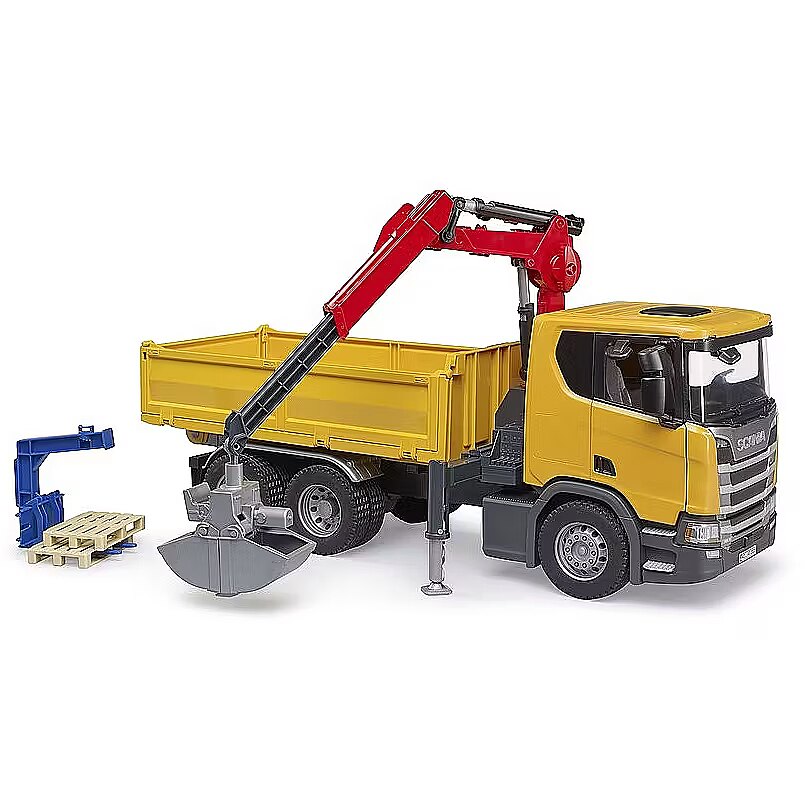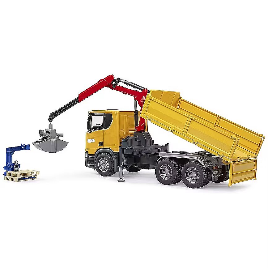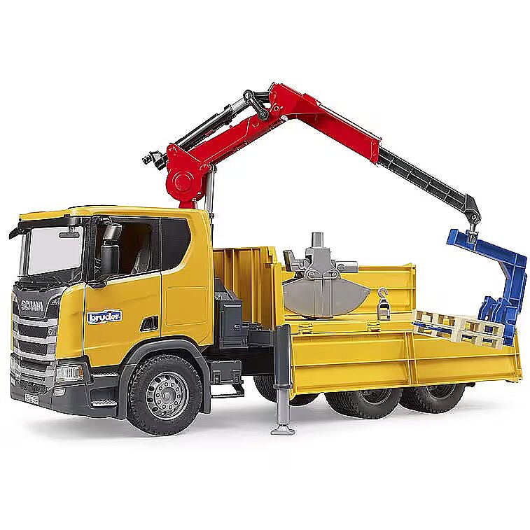 Bruder Scania Super 560R Baustellen-LKW mit Kran und 2 Paletten