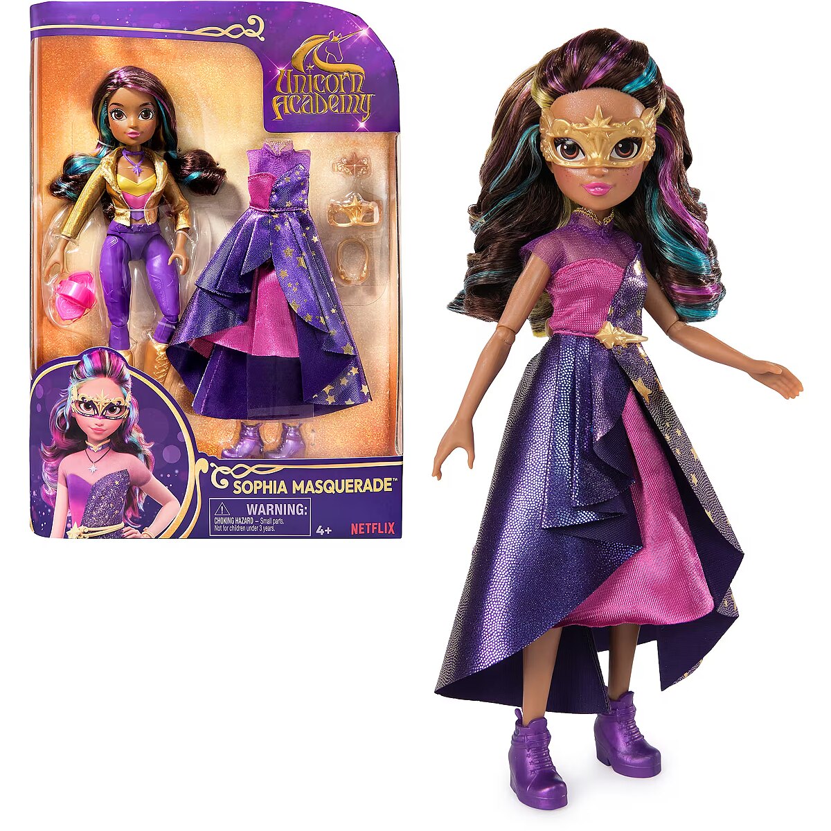 LongDesc - Celebrate the bond between rider and unicorn with the Unicorn Academy Sophia & Wildstar Set. Inspired by the NETFLIX animated show and best-selling book series where friendship reins, this set will spark endless imaginative storytelling. 4.5-inch Sophia features realistic true-to-show details and 7 points of articulation for dynamic poses. Wildstar stands at 5 inches tall, complimenting Sophia’s look with Light Magic markings and brushable rainbow mane and tail (brush included). As you play, pose Sophia to sit on Wildstar and ride into adventure. With the removable bridle and saddle accessories, Sophia can securely stay in place on Wildstar. For more ways to experience Unicorn Academy with your favorite characters, look for the other small dolls, including Ava, Layla, Isabel, Valentina, and their unicorns (sets sold separately) and expand your world. For kids who enjoy unicorns and horse toys, dolls & accessories, doll house play, collectibles, plush toys and more, Unicorn Academy toys are fun birthday gifts for girls or gifts for any occasion. Experience enchanting Unicorn Academy adventures with the Sophia & Wildstar Set.Includes: 1 Doll, 1 Unicorn, 1 Removable Saddle, 1 Removable Bridle, 1 Hair Styling Tool