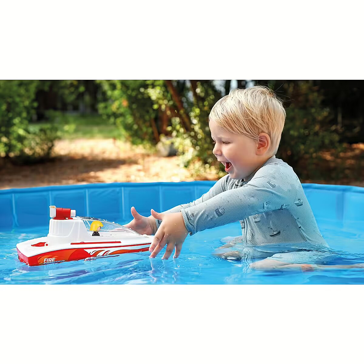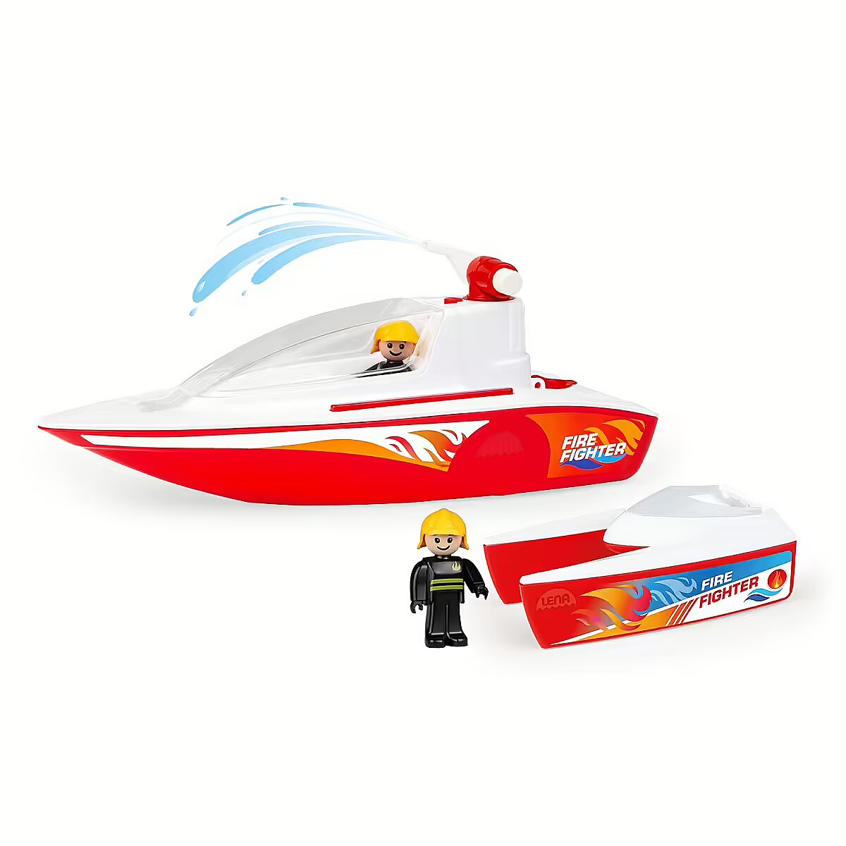 Description - Zestaw Łódź strażacka Boazz z katamaranem Podwójna zabawa z zestawem łodzi strażackiej BOAZZ z funkcją natrysku i łodzią strażacką w stylu katamaranu. Z dwiema figurkami LENA. Nadaje się do stosowania wewnątrz i na zewnątrz.