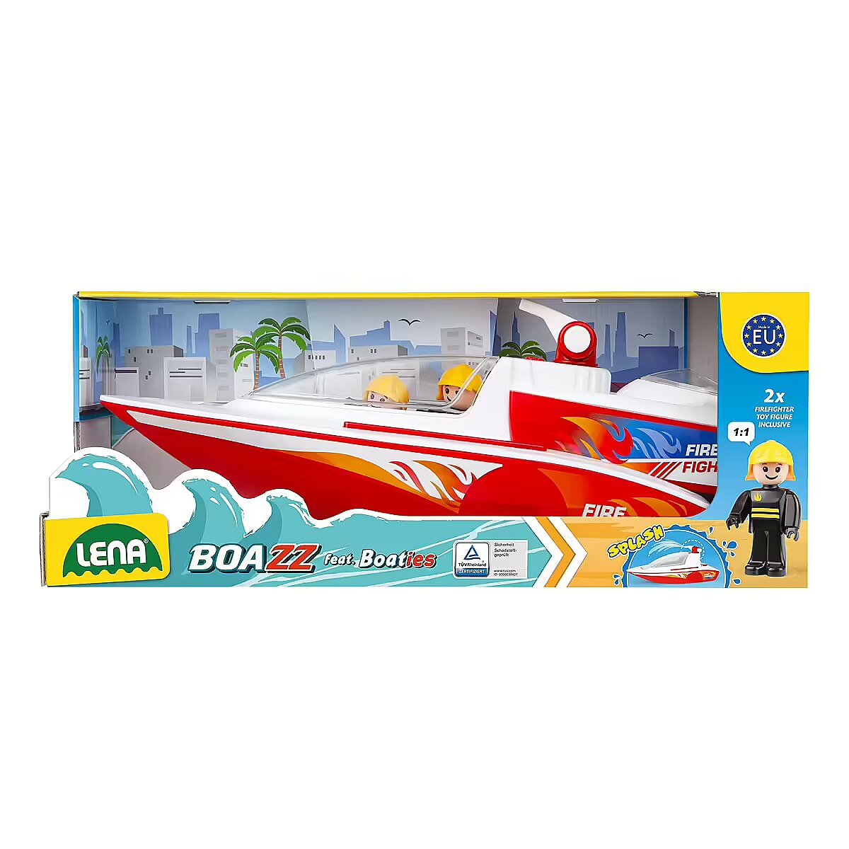 Kirjeldus - Boazz tuletõrjelaev koos katamaraaniga Kahekordne lõbu BOAZZ tuletõrjelaeva komplektiga, millel on veepihusti funktsioon ja katamaraanilaadne tuletõrjelaev. Kahe LENA figuuriga. Sobib kasutamiseks nii siseruumides kui ka väljas.