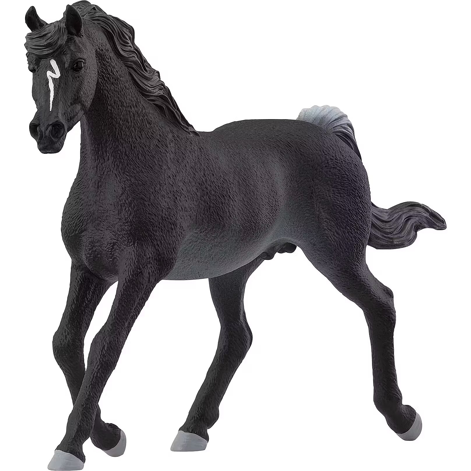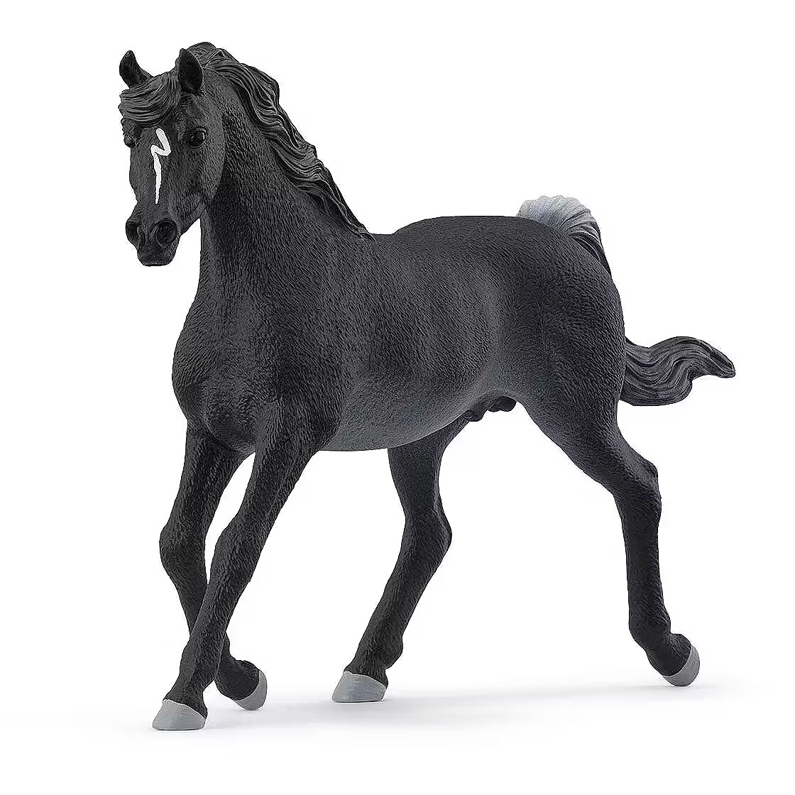 LongDesc - The spirited Arabian Stallion looks so sleek. His coat is black as night. There are only a few light strands in his tail and on his forehead he has a delicate white stripe. When he trots elegantly across the paddock, it's obvious why he is so popular with horse lovers. He is simply so graceful.When the black Arabian Stallion stands next to the snow white Arabian Mare (sold separately), the two make a stunning pair. But the beautiful thoroughbred also cuts a great figure on his own. With his long, graceful legs and slender neck, he looks simply breathtaking. But he is also really sporty and loves nothing more than a good horse race. His temperament is a perfect match: He is vivacious and outgoing, but also quite sensitive.